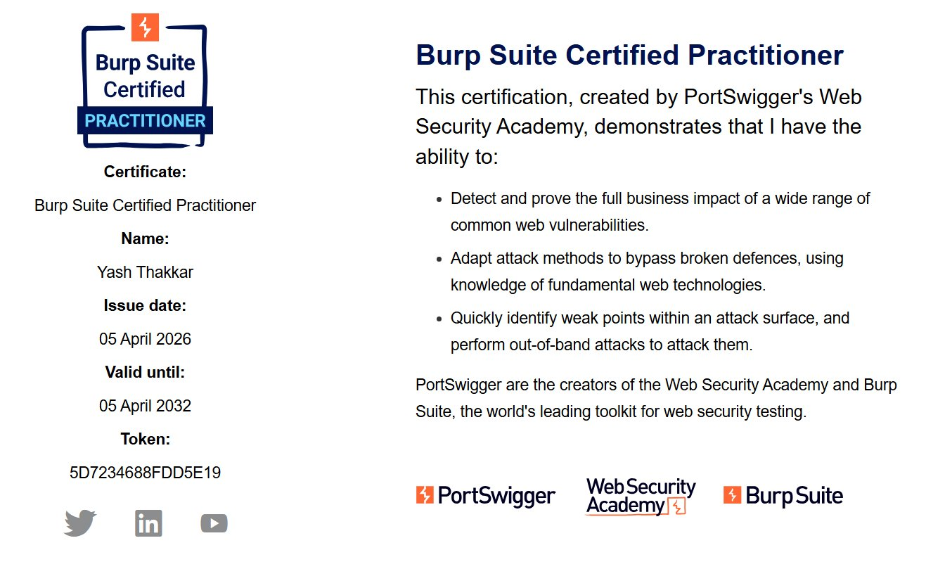 Shoutout to the Portswigger staff for being very kind and understanding and giving me a free retake. I passed on this attempt with about 20-30 minutes to spare. It went relatively smooth. I gave the second attempt on 5th April, 2026 and got the result that I had passed on 7th April, 2026.