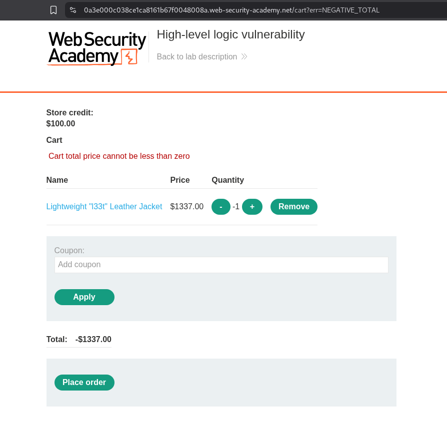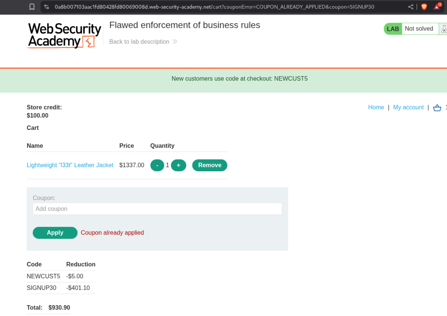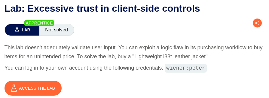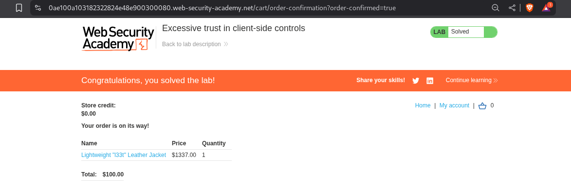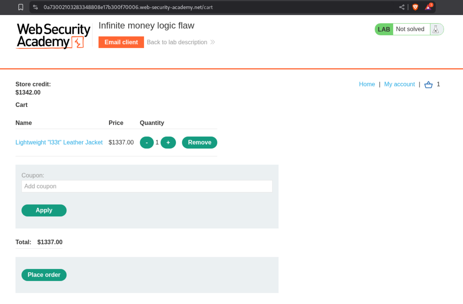 This lab is also a favorite one of mine. There is a bug here to get infinite money. We are supposed to buy the Lightweight l33t leather jacket.
