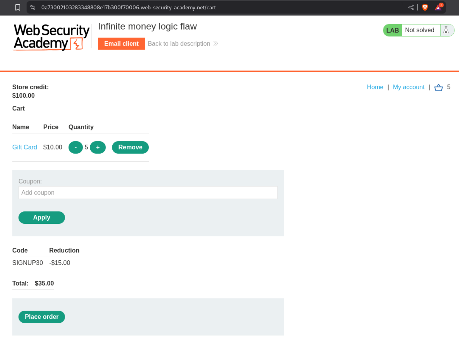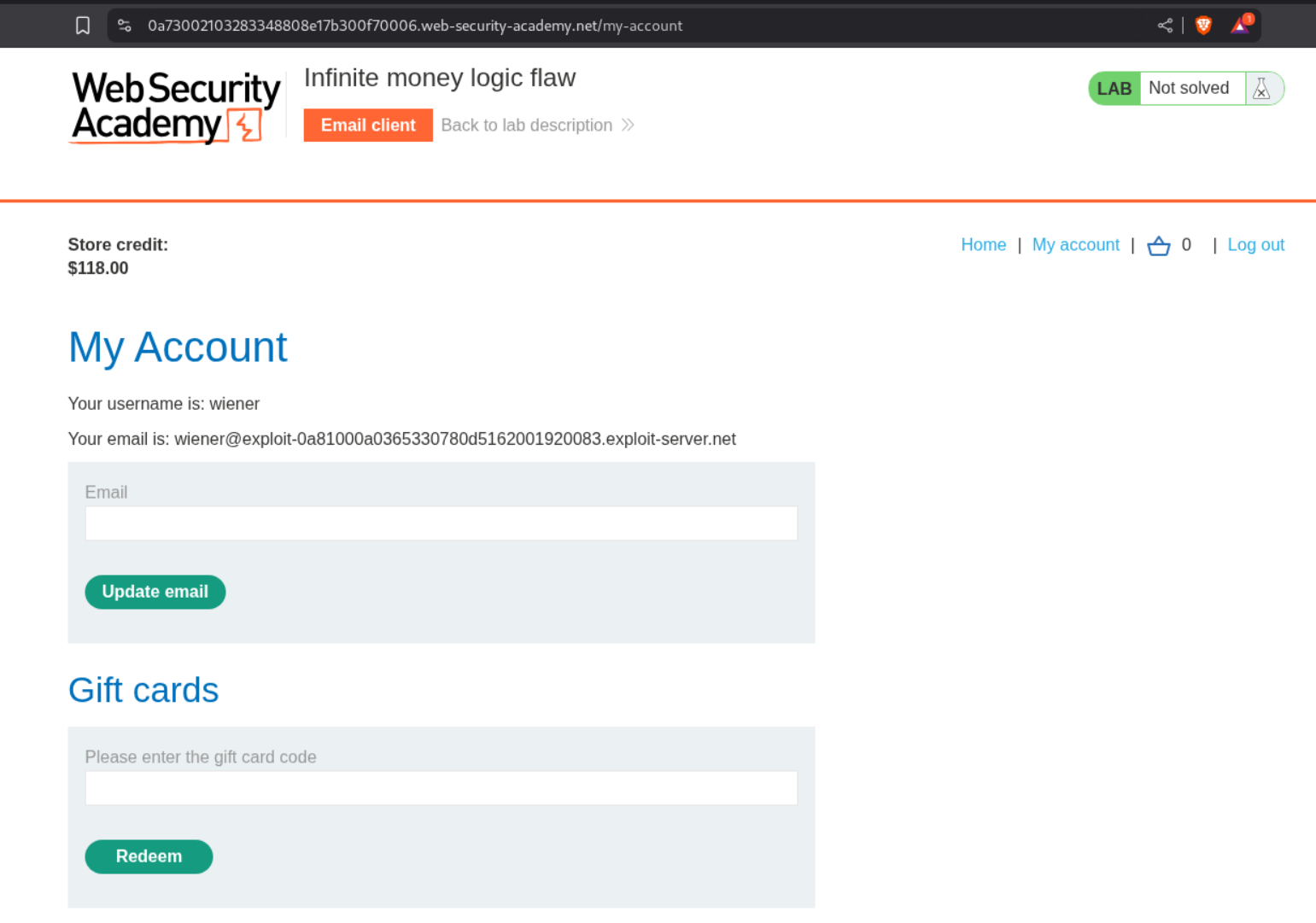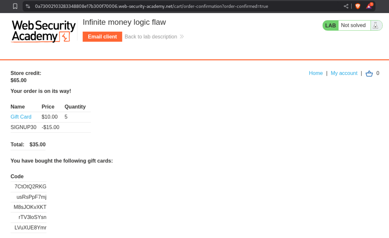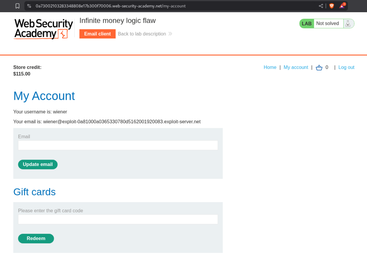 What made these labs particularly interesting was how they required understanding the application’s purpose, not just its technical implementation. The infinite money lab with gift card automation was especially clever—turning a simple coupon bug into unlimited credit through Burp macros.