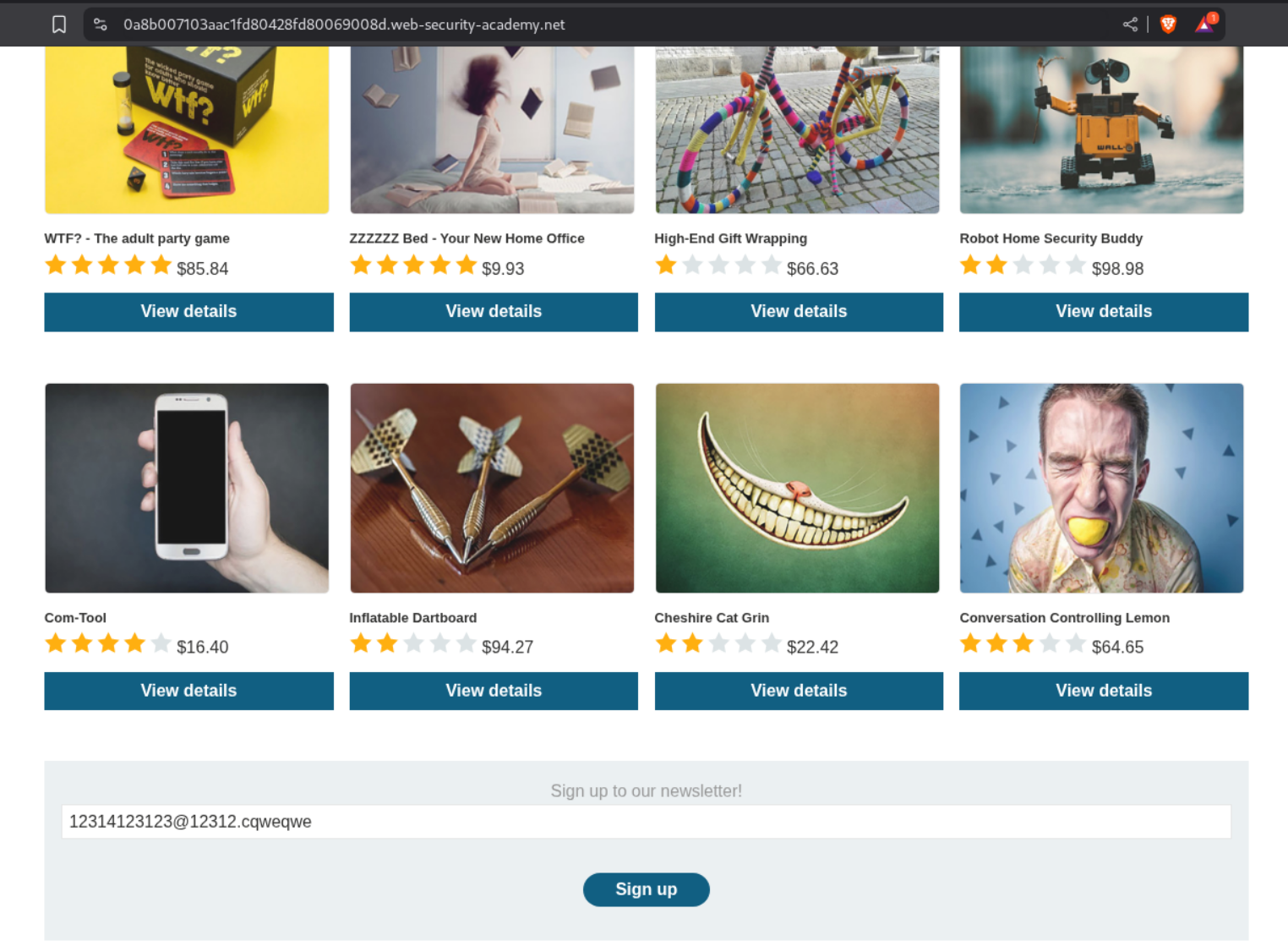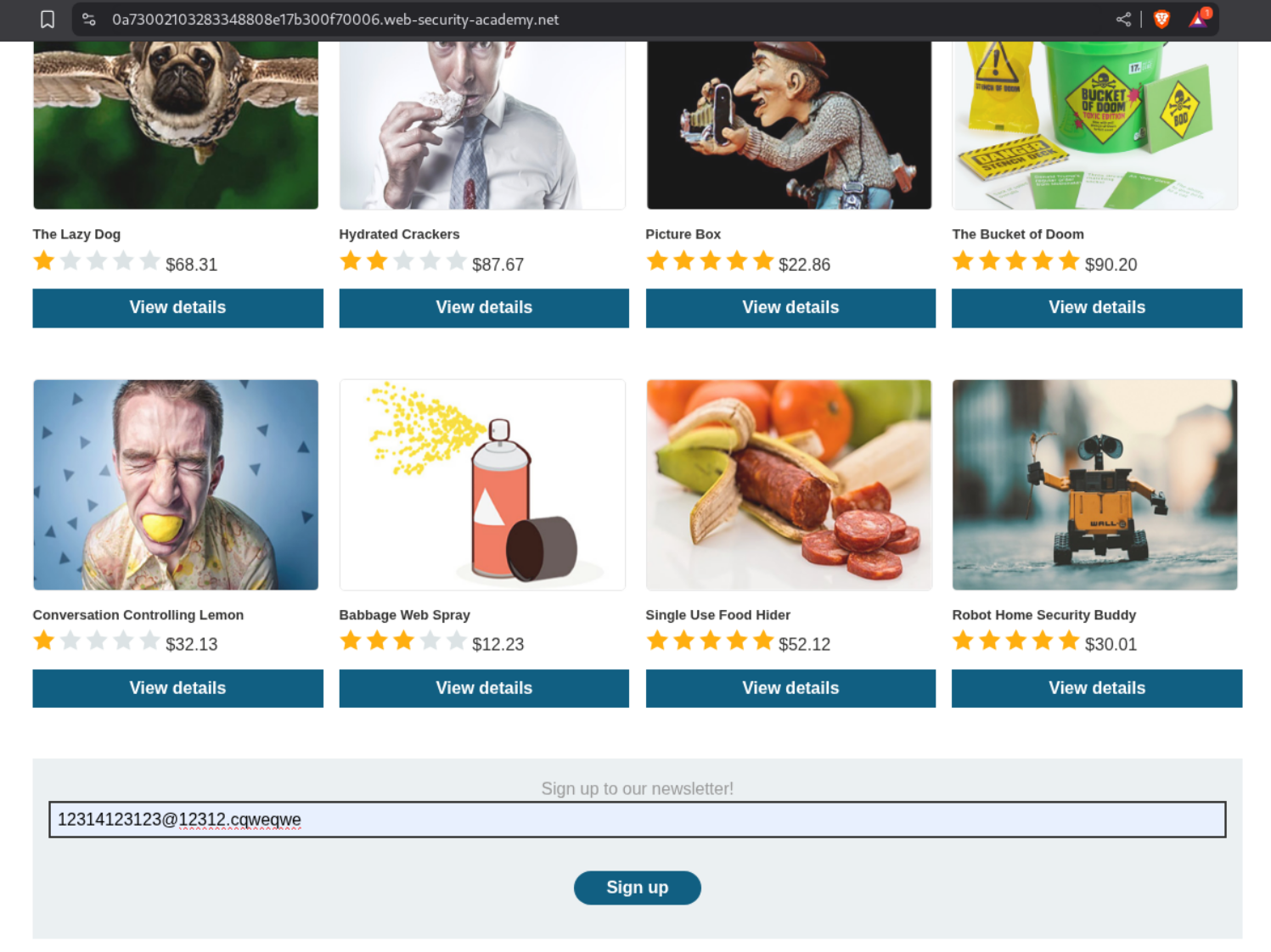 In the footer, we have a Sign up to newsletter form. We fill this form.