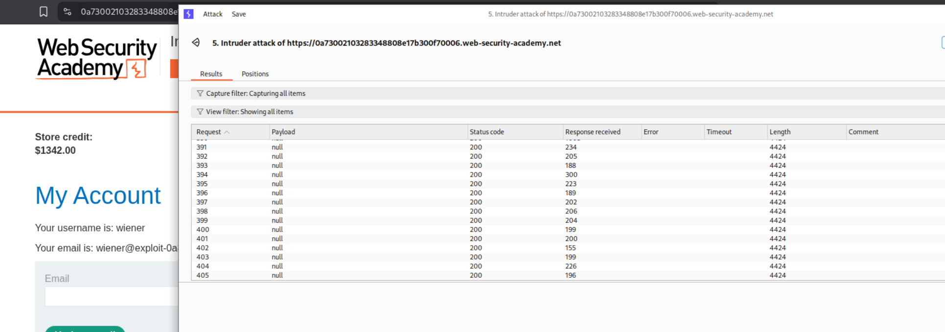 Running Intruder will show us that our store credit increased meaning its working. Now we need to wait.