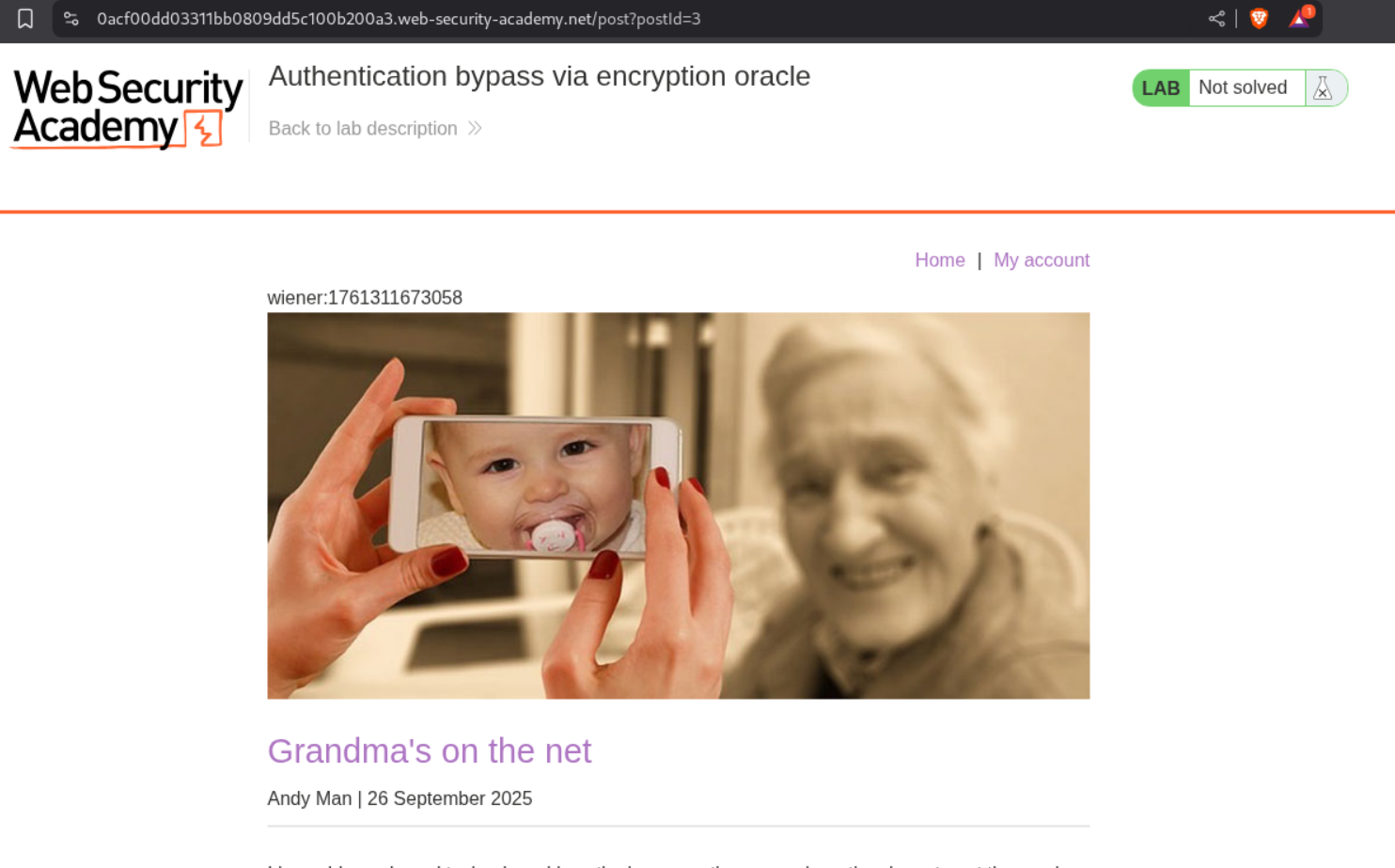 Pasting the stay-logged-in cookie’s value and sending it via the GET request shows us the username:timestamp in response.