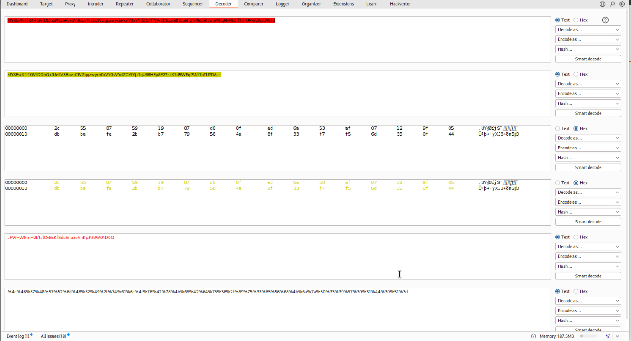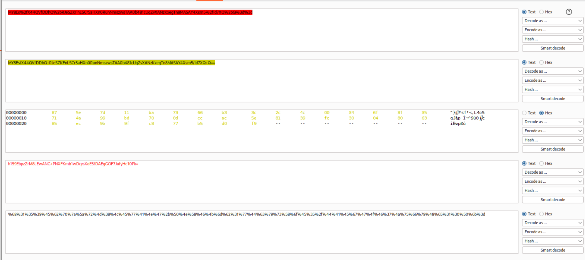 Now we will paste in the cookie value in decoder again. Then we will again URL decode > base64 decode > This time remove the first 32 bytes instead of 23 bytes > base64 encode > URL encode.