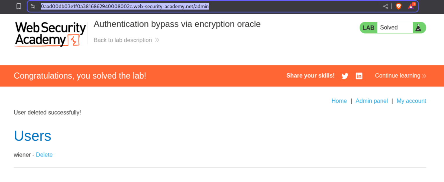 Now I reloaded the page, removed the notification and session cookie and pasted in the value we got before, the cookie that returned administrator:timestamp in place of stay-logged-in cookie.