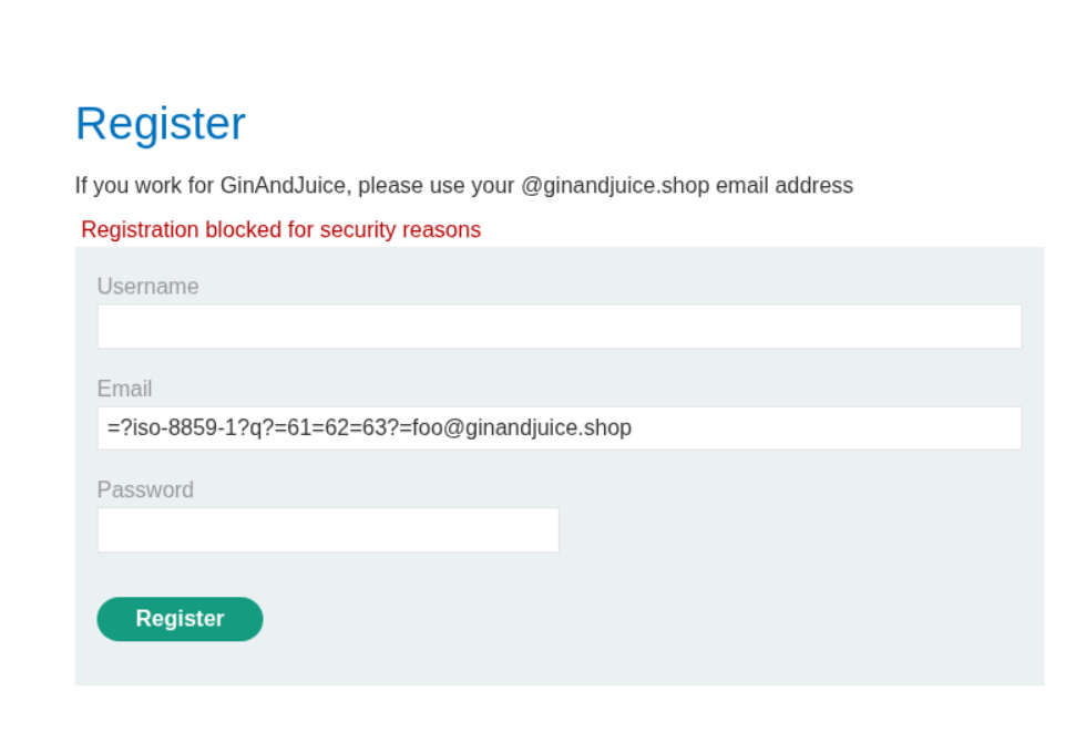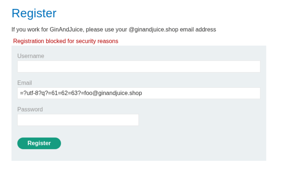 =?utf-8?q?=61=62=63?=foo@ginandjuice.shop We use this payload next to test for utf-8 encoding. It fails as well.