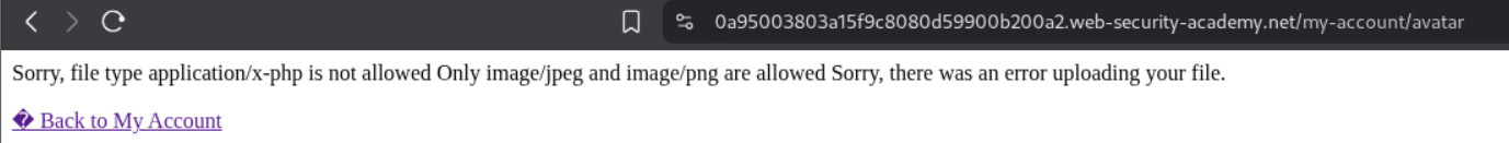 It says that application/x-php file type is not allowed and only image/jpeg image/png is allowed.