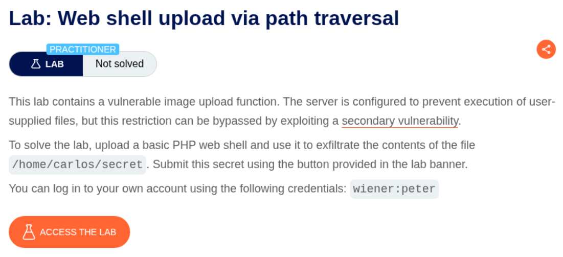 In this lab, the folder where the file ends up, does not have execution rights, therefore we must abuse path traversal to store it in another directory which has the execution rights.