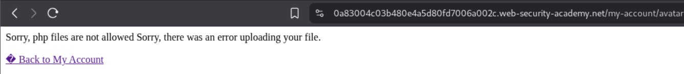 We can see that it fails and we are told that php files are not allowed.