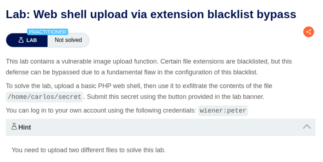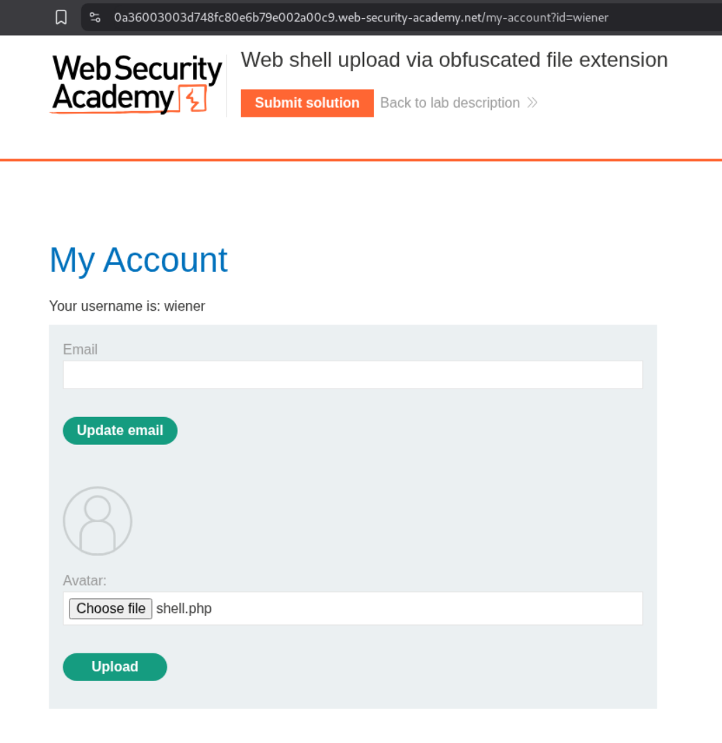 In this lab we are supposed to obfuscate the file extension in order to get the RCE.