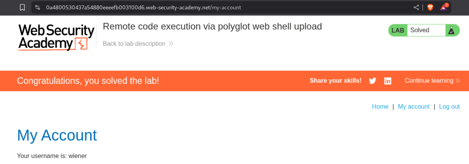 6. Remote code execution via polyglot web shell upload