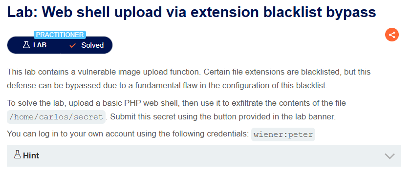 This lab is using a blacklist for extensions, which we need to bypass.