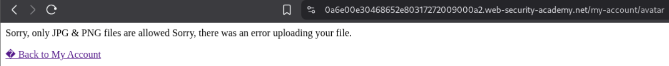 As we can see, we get a 403 forbidden saying that the file is not a valid image.