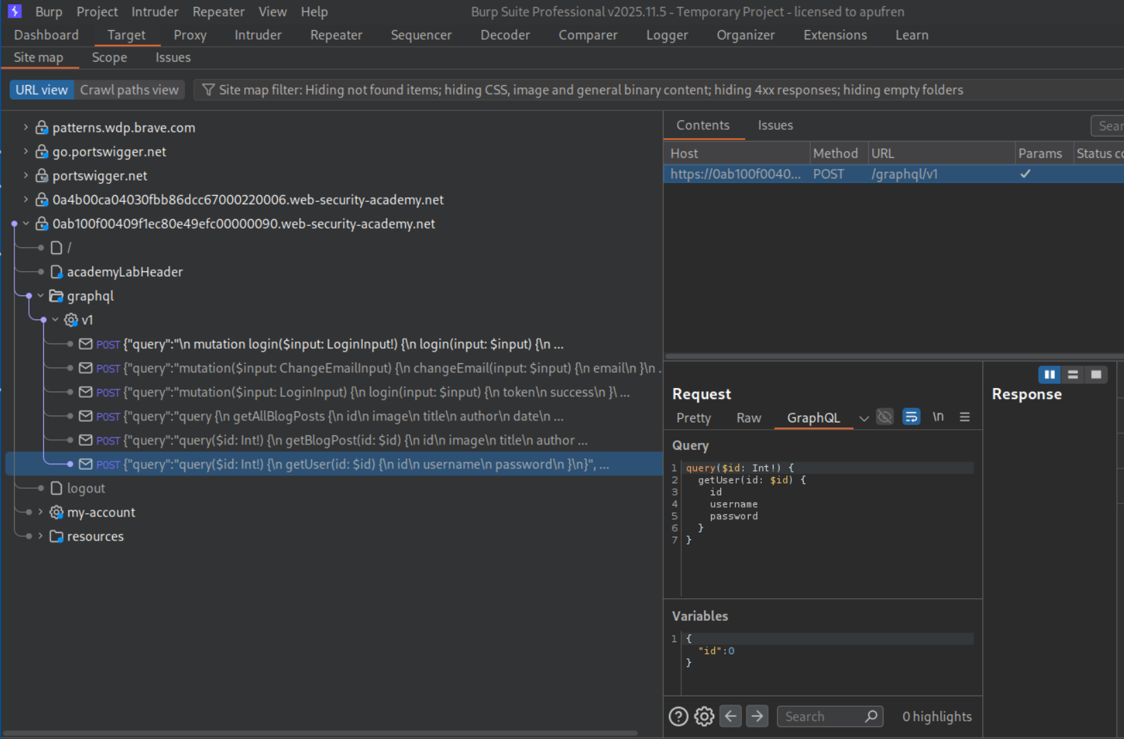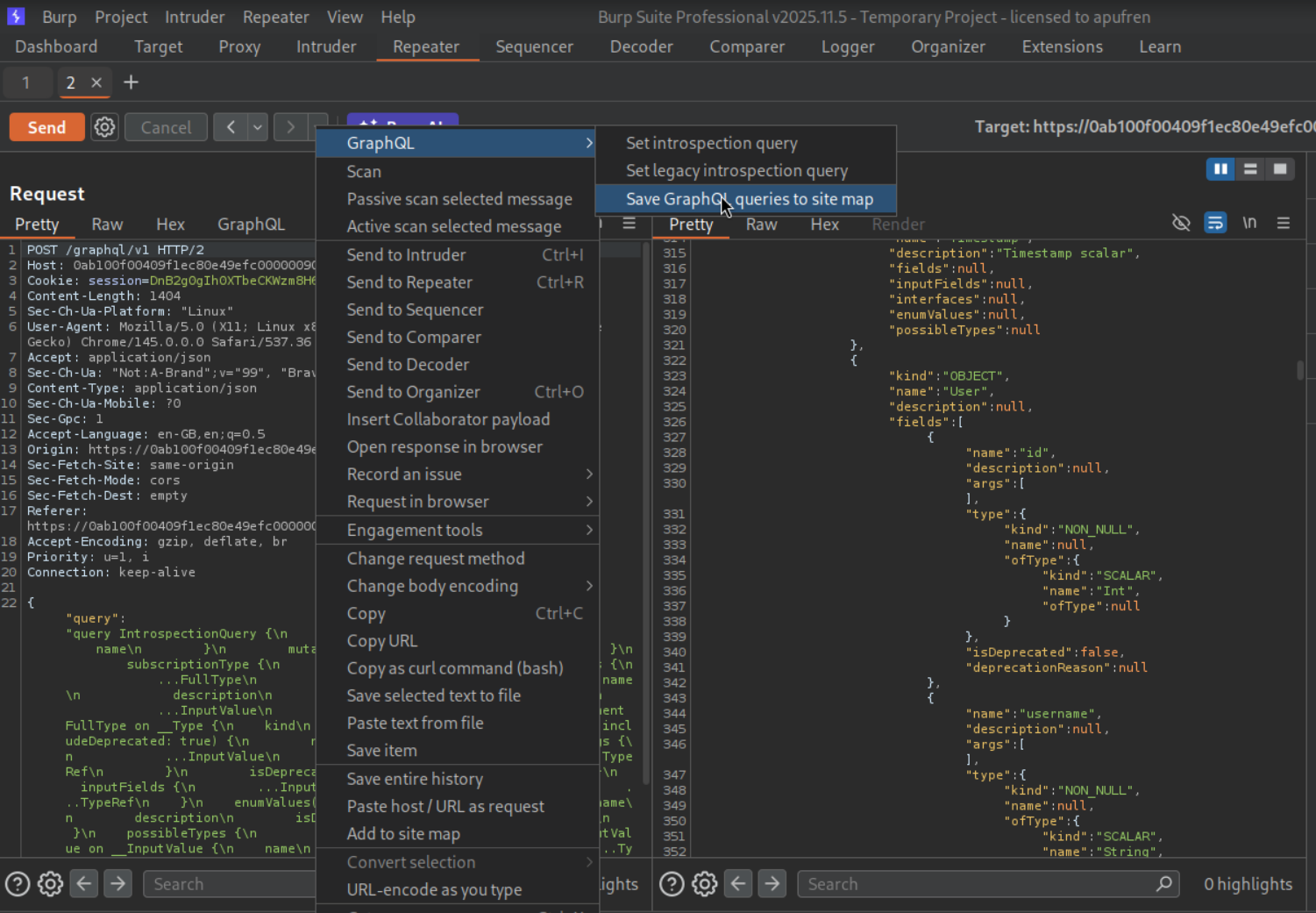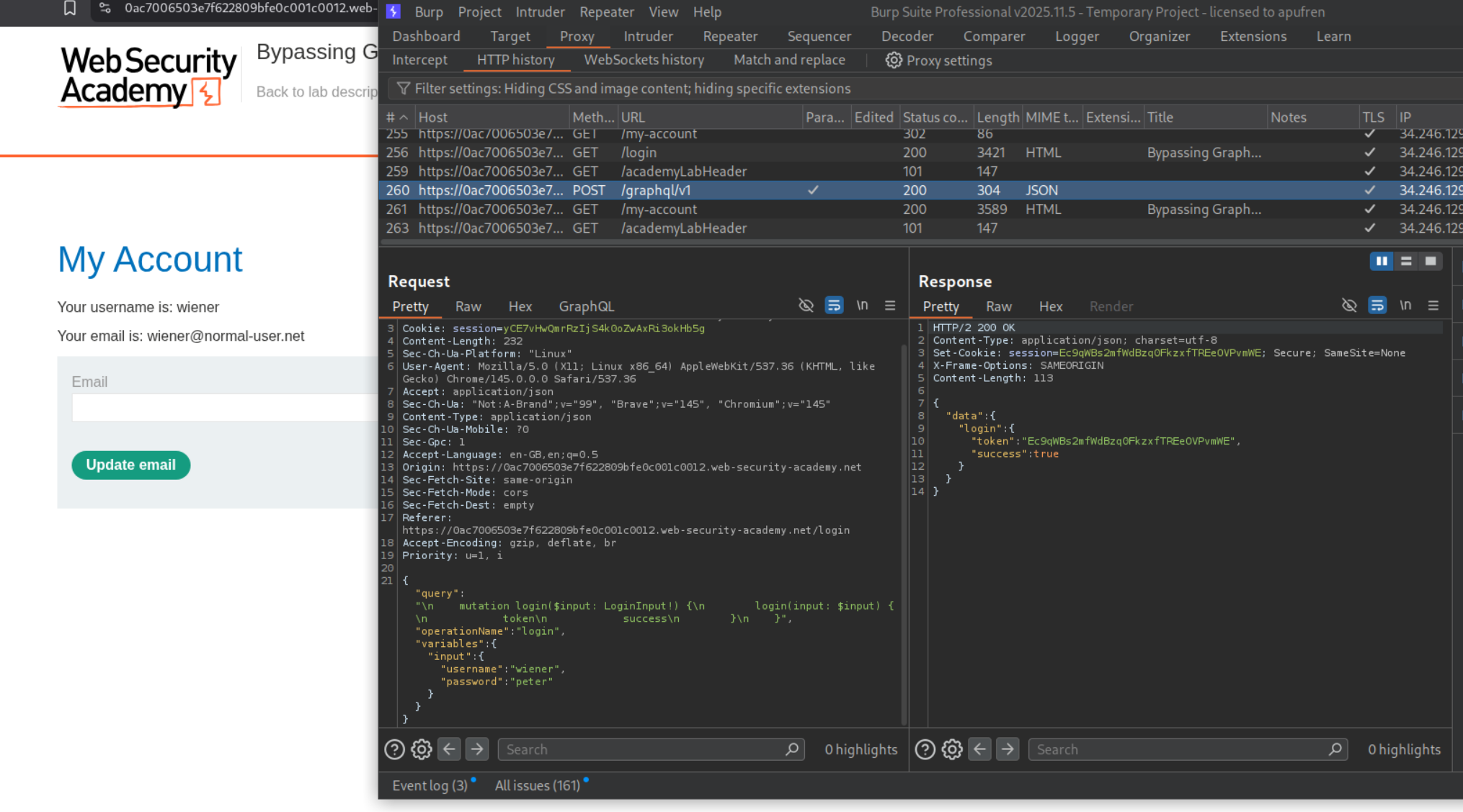We can see that GraphQL is being used for authentication. We send this request to repeater.