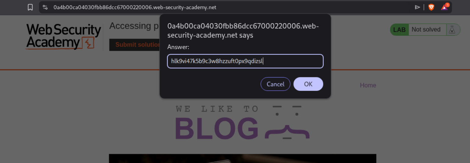 We click on submit solution and enter the password.