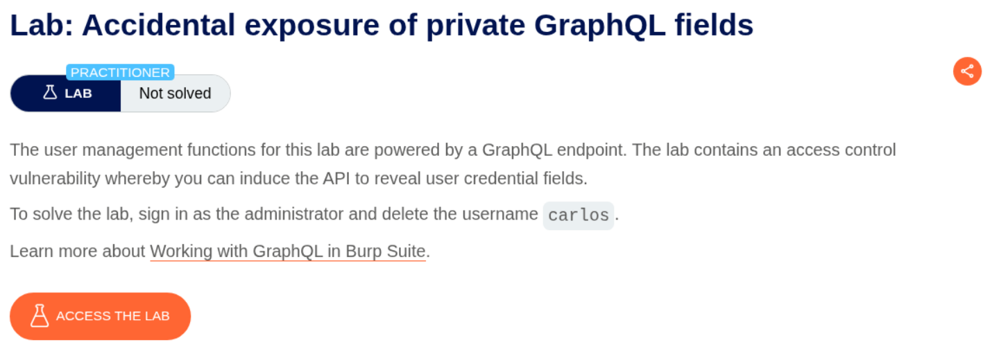 We need to find private GraphQL fields and leak credentials then login as administrator to delete carlos.