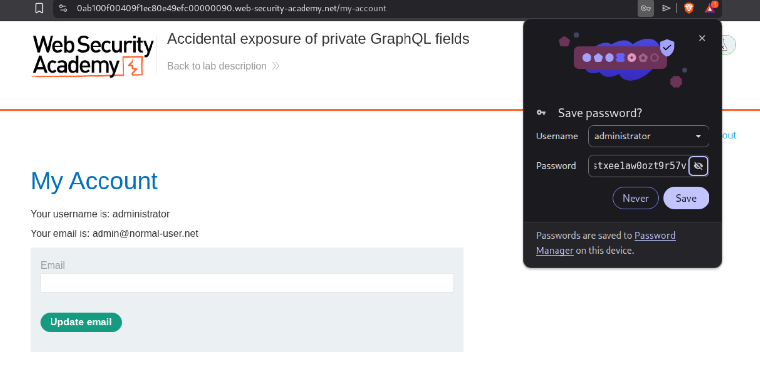 We send a graphql request to repeater and make an introspection query (this is to find the hidden password field).