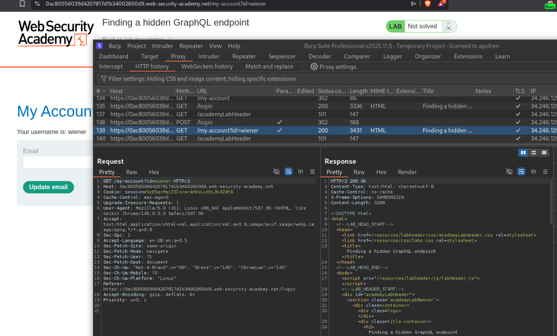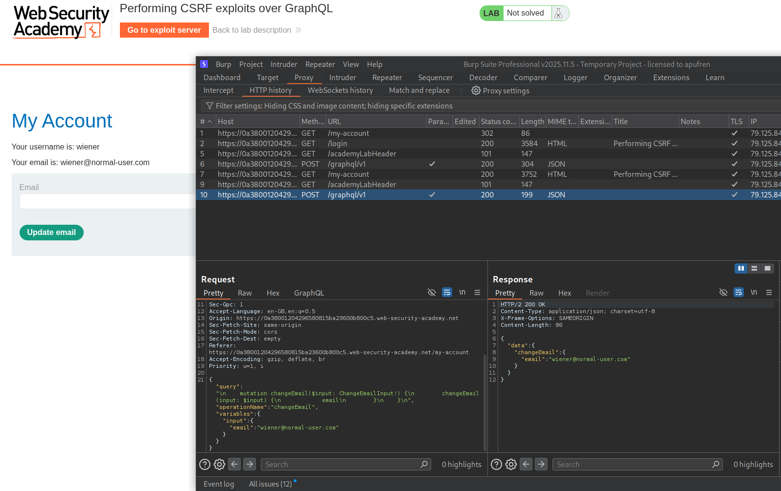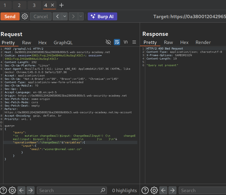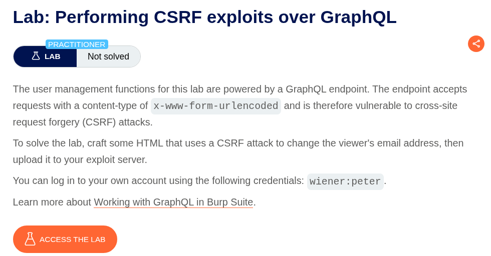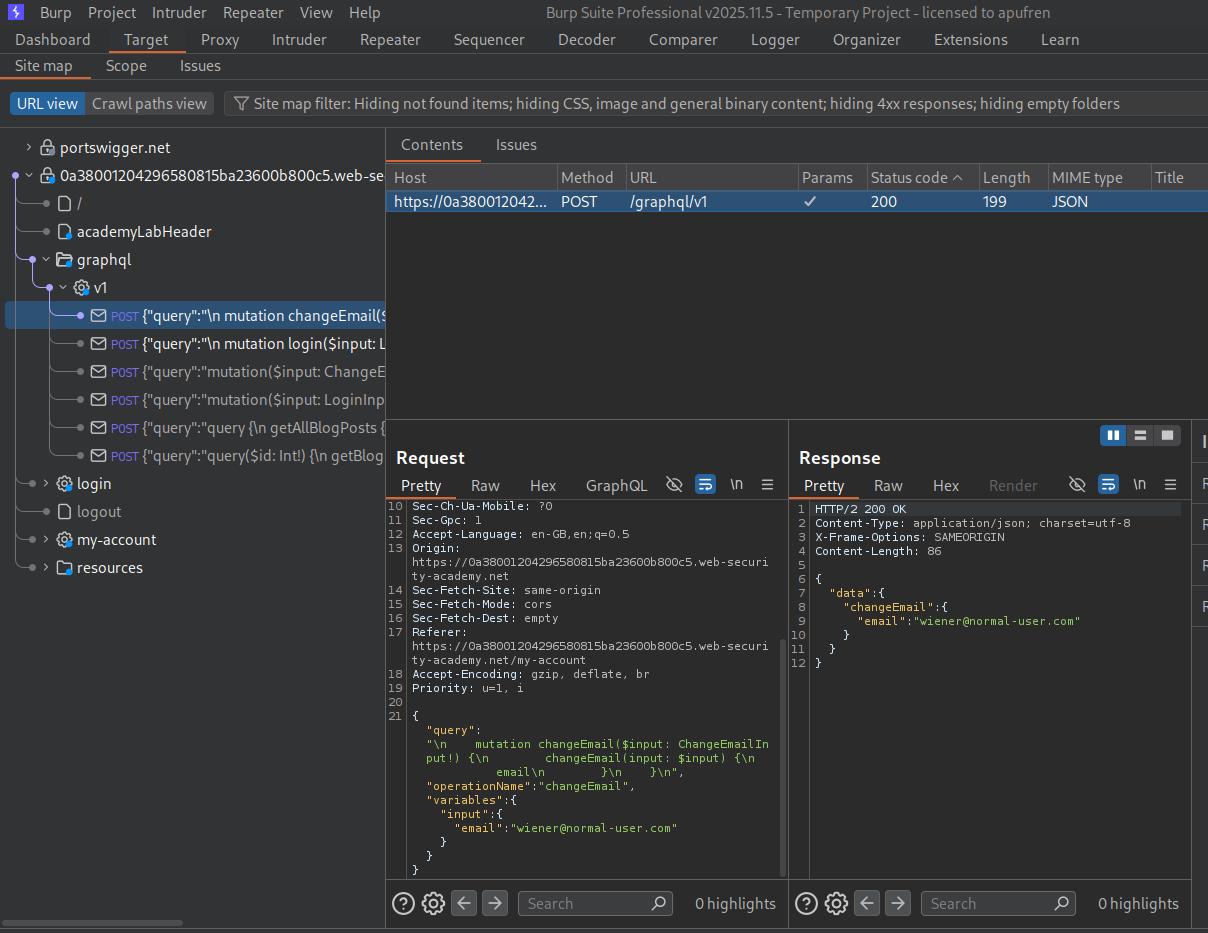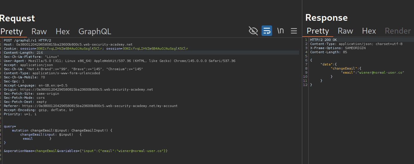 We need to perform a CSRF over the GraphQL endpoint to change the target’s email address.