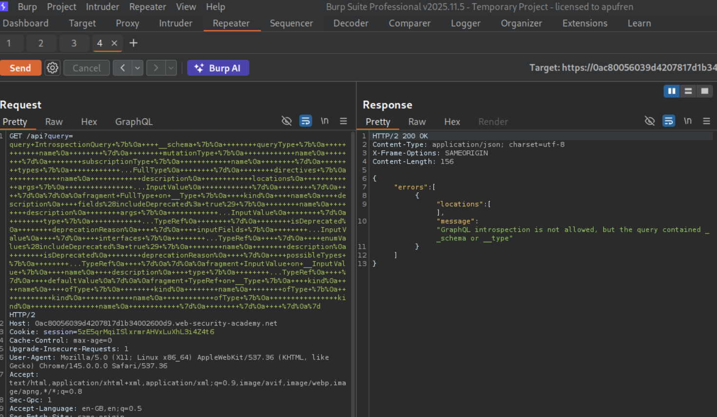 Now we will send an introspection query. But we can see that introspection is not allowed.