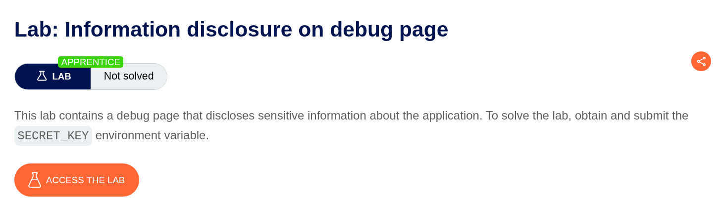 Completed all 5 information disclosure labs from Portswigger. Information disclosure vulnerabilities are about applications revealing data they shouldn’t—whether that’s error messages showing framework versions, debug pages exposing environment variables, backup files containing source code, or version control history leaking credentials. While these might seem like “low severity” findings at first, the information leaked often enables much more serious attacks. Below is a detailed explanation of information disclosure vulnerabilities followed by step-by-step walkthroughs for each lab.