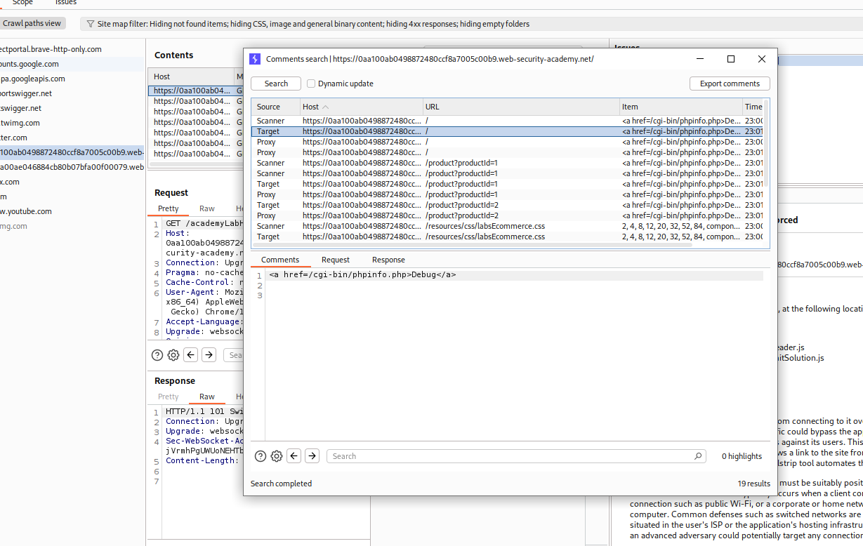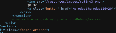 We find the endpoint for the debug page in the comments in the source code of the page - /cgi-bin/phpinfo.php.