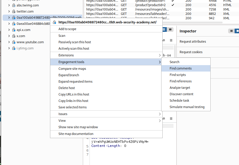 Another method to find comments (the intended way) is to use the Find comments feature from engagement tools in burp.