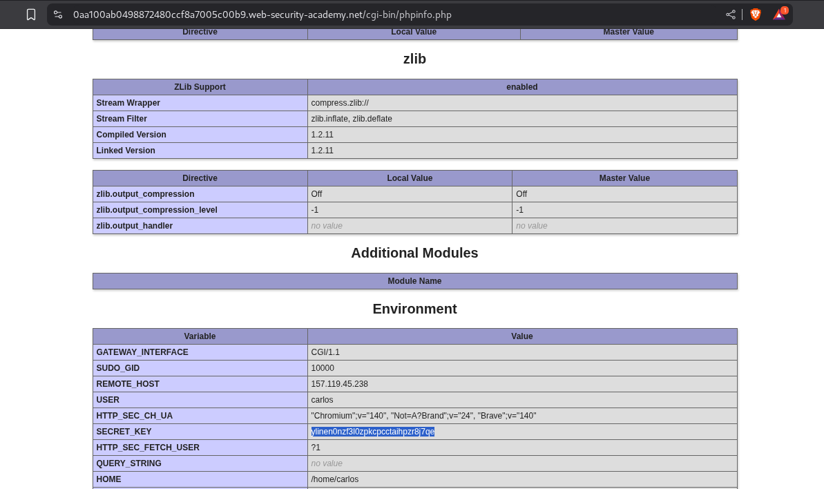 To solve this lab we need to submit the value of the SECRET_KEY environment variable.
