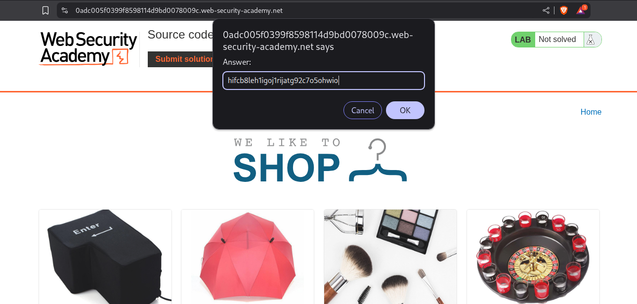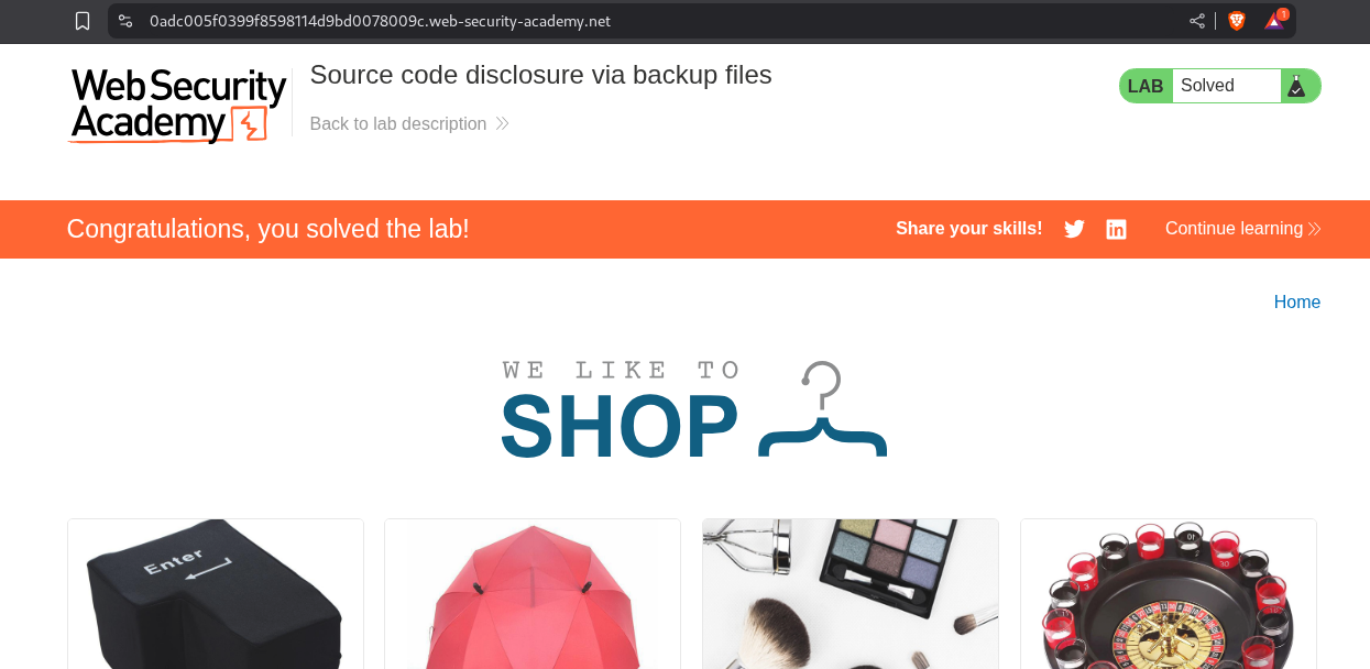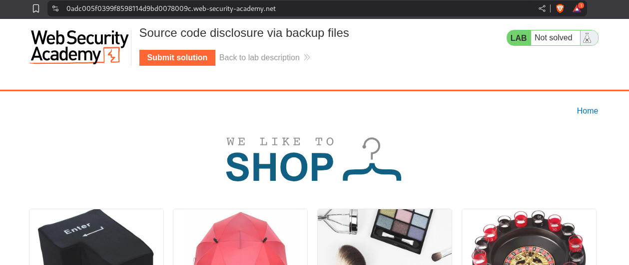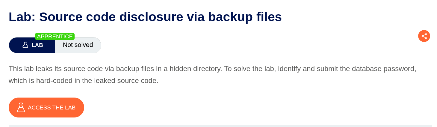 We need to find the database password from exposed backup files and submit it to solve the lab.