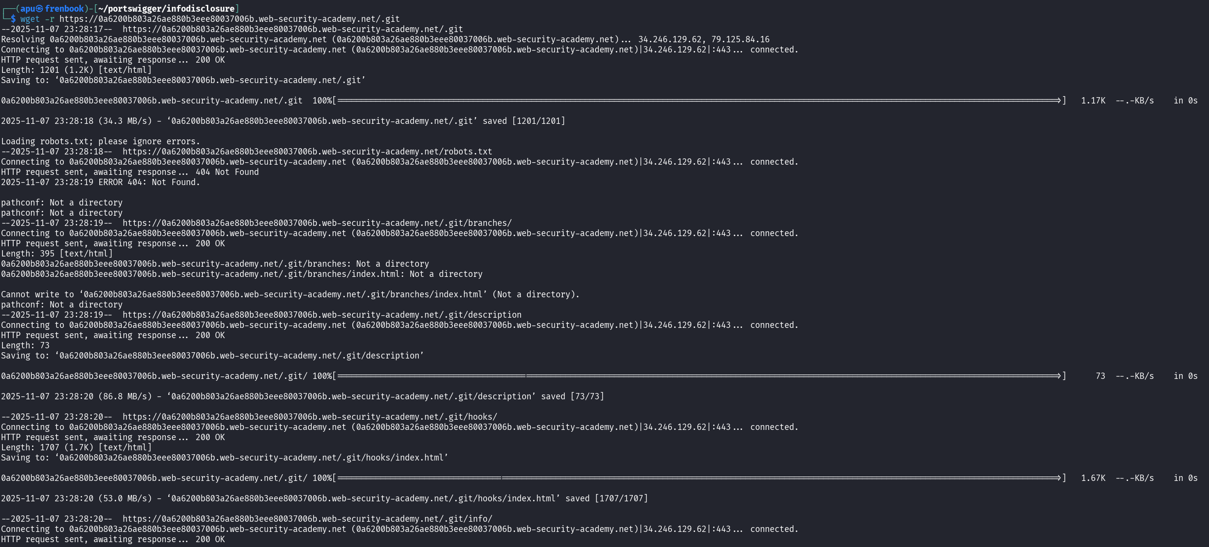 These 5 labs showed how applications leak information through various channels—error messages, debug pages, backup files, HTTP methods, and version control history. Key takeaways include: