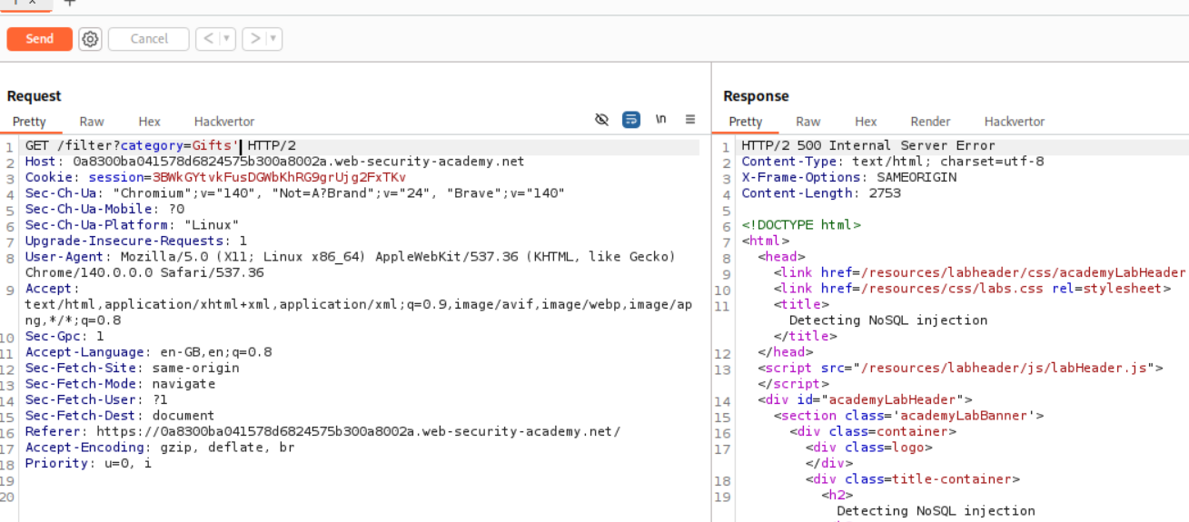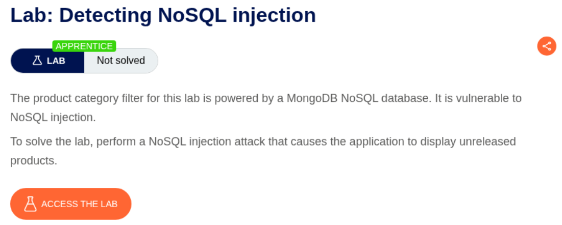 Completed all 4 NoSQL injection labs from Portswigger. NoSQL injection vulnerabilities occur when applications construct database queries using unsanitized user input in NoSQL databases like MongoDB, CouchDB, or Redis. Unlike traditional SQL injection, NoSQL databases use different query syntax—often JSON or JavaScript—which means different injection techniques and operators. What makes NoSQL injection particularly interesting is that the attack surface includes not just WHERE clauses, but also operators, aggregation pipelines, and even JavaScript execution contexts. These labs covered detection, operator injection for authentication bypass, data extraction character-by-character, and exploiting JavaScript execution to extract unknown database fields. Below is a detailed explanation of NoSQL injection vulnerabilities followed by step-by-step walkthroughs for each lab.