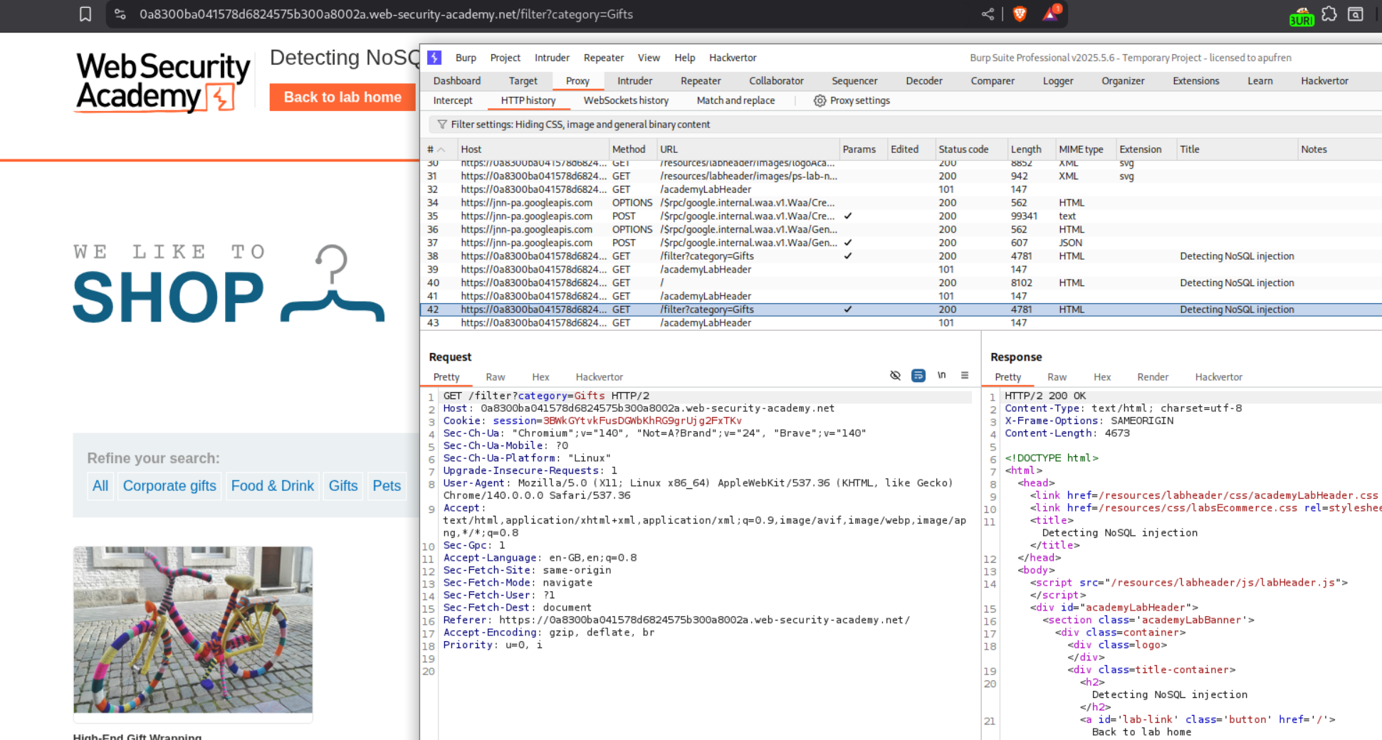 These 4 labs demonstrated the unique challenges and techniques of NoSQL injection. Key takeaways include: