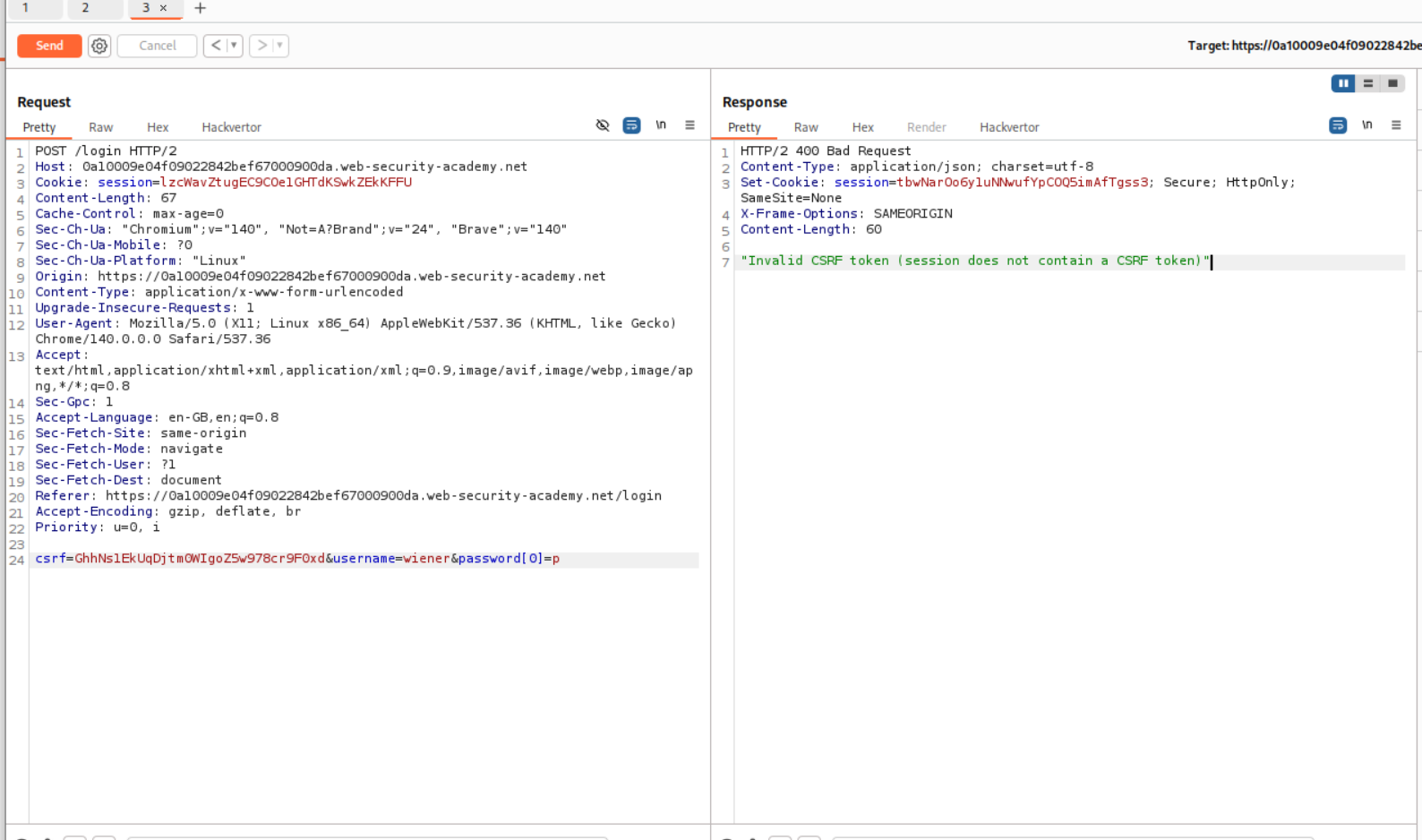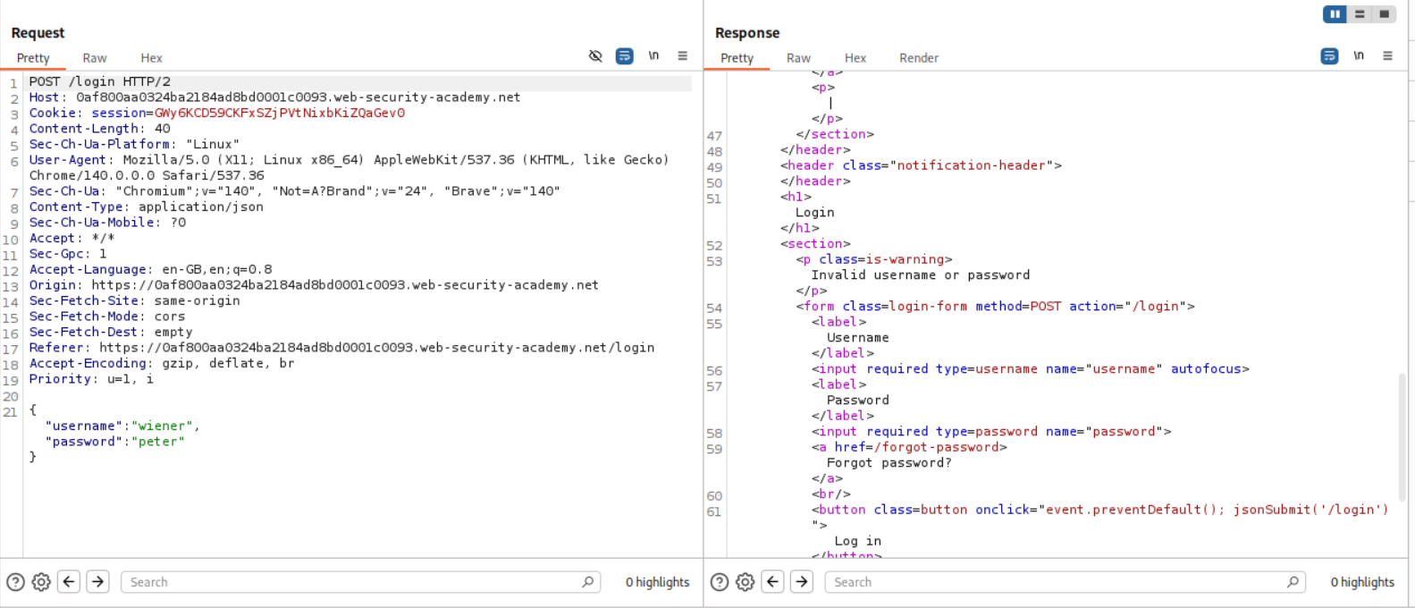 We need to login as the user wiener. Then we can send the request to repeater to try to get the password.