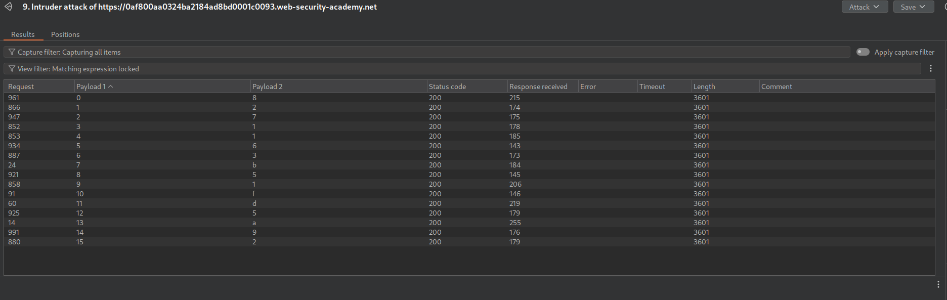 We are supposed to login as carlos and for that we need to find the value of the password reset token. I seriously couldn’t do it myself so shoutout to popo hack for the walkthrough . I strongly suggest watching this first and then trying it on your own. I have done it in a much simpler way by a running the intruder once, while in the walkthrough, he runs it individually for each character.