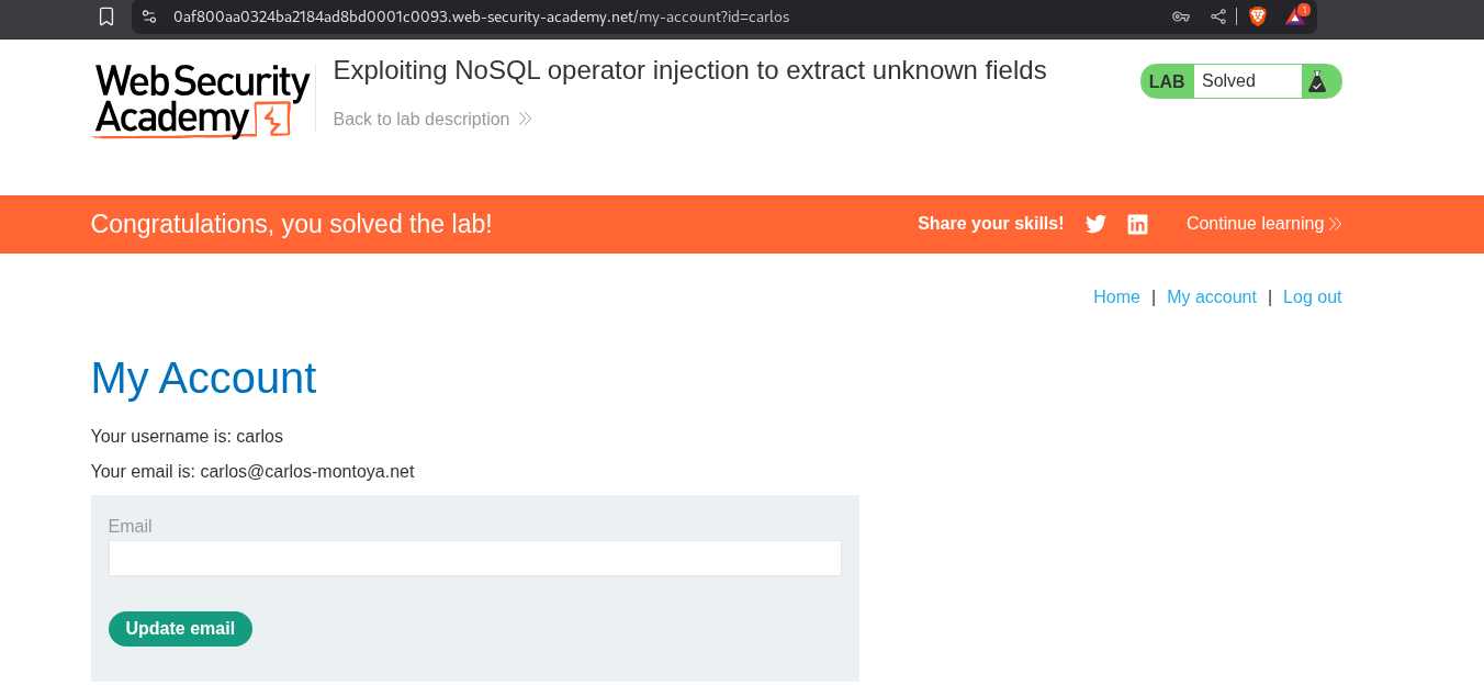The progression from simple detection to authentication bypass to character-by-character extraction to JavaScript-based field discovery demonstrated the versatility of NoSQL injection. Each lab built on previous techniques while introducing new concepts specific to NoSQL databases.
