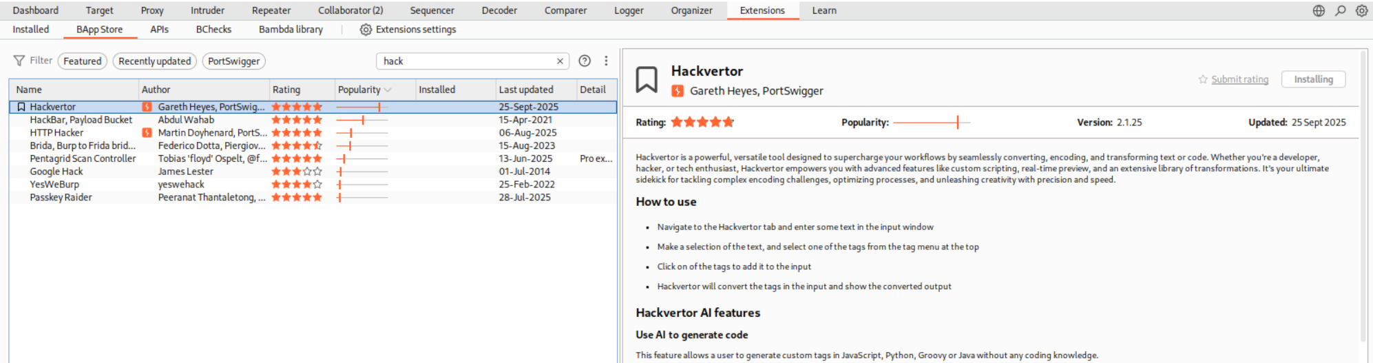 The solution says we should use the Hackverter extension to get encode the payload to exploit the SQLi.