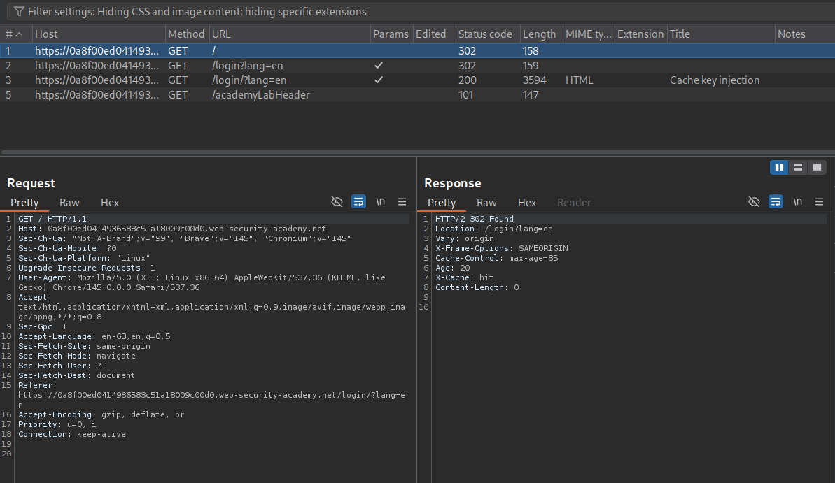 Now we will add the X-Original-Url header with the the request to the homepage. As we can see, we get a cache hit.